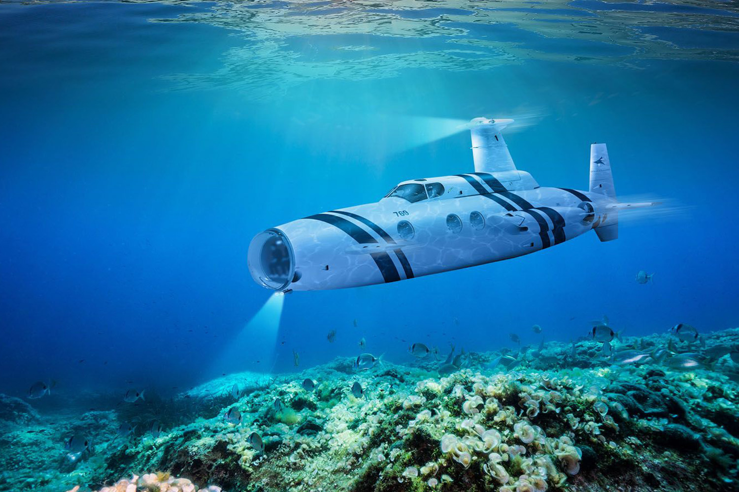 Субмарина оснащена экологичными электрическими двигателями и батареей, которая полностью заряжается за четыре часа и работает до восьми часов. Кроме суперъяхт, DeepFlight начали использовать в туристической отрасли.
