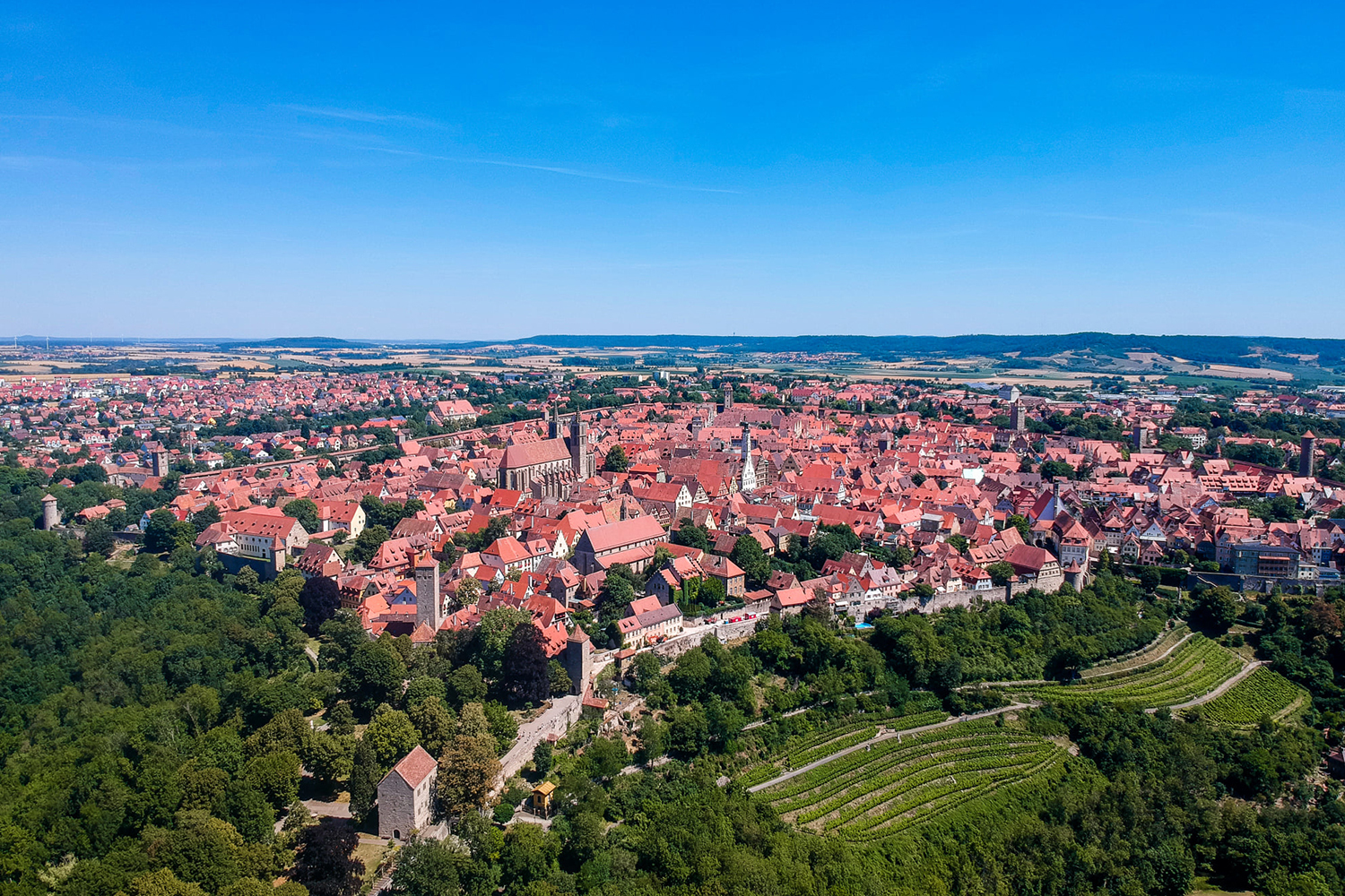 В Германии более 2000 населенных пунктов, в том числе четыре города с населением свыше 1 млн человек, однако самым любимым туристами остается небольшой старинный городок в Баварии, символ средневековой Германии Ротенбург-об-дер-Таубер (переводится с немецкого как «Красный замок над Таубером»). Город с населением около 11 000–12 000 человек удачно расположился на пересечении двух популярных туристических маршрутов «Романтическая дорога» и «Дорога замков», посещают же Ротенбург, по разным оценкам, 2–3 млн путешественников ежегодно.