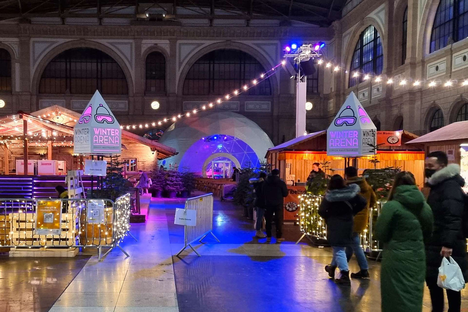 До 26 февраля насладиться лыжным отдыхом прямо... на главном вокзале Цюриха! А точнее, на его «Зимней Арене» – в этот комплекс входят «лес для гурманов», где можно заказать блюда и закуски на любый вкус и настроение, спортивный зал, в котором всю зиму транслируют соревнования по главным зимним видам спорта и подают вкуснейший глинтвейн, а также бар-иглу с живой музыкой.