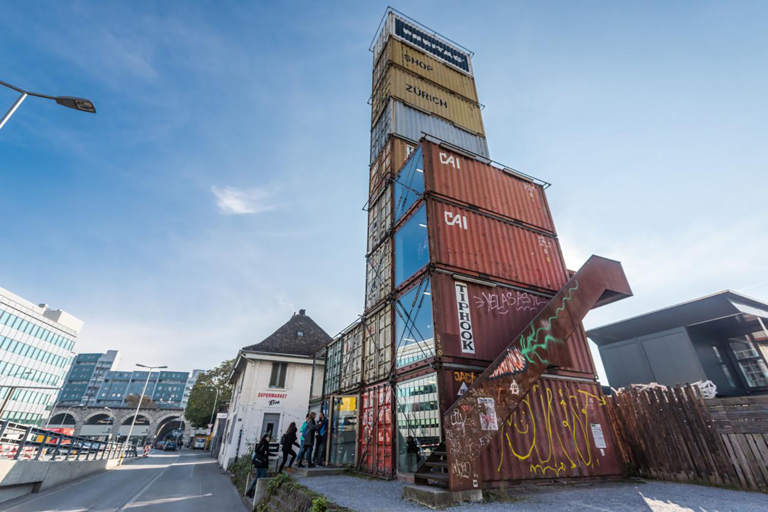 Неподалеку от моста Хардбрюке расположился неожиданный «небоскреб» из 17 штабелированных грузовых контейнеров, это – Башня Freitag, где можно приобрести одну из 1600 сумок одноименного бренда. Freitag ведет свою историю с 1993 года, когда братья Маркус и Даниэль Фрайтаг начали создавать дизайнерские сумки из переработанных брезентов, которые в избытке оставались от проезжавших мимо грузовиков. За прошедшие с того момента годы прославившийся на весь мир бренд стал одним из символов Цюриха как города современного и стремящегося к инновациям.