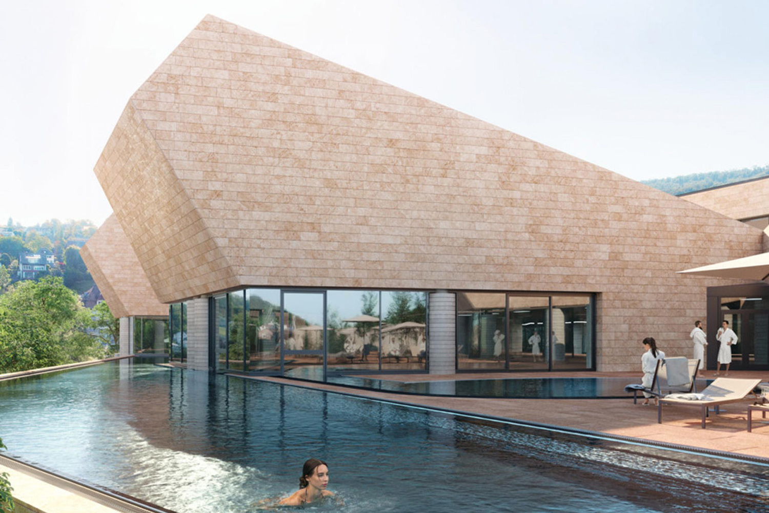Центр, спроектированный знаменитым архитектором Марио Боттой, расположен в небольшом известном своими спа-традициями городке Бадене (15 минут езды от центра Цюриха). К услугам посетителей большой открытый бассейн, купальни на реке Лиммат, крытые бассейны, соленые ванны, около 400 лежаков для принятия солнечных ванн.