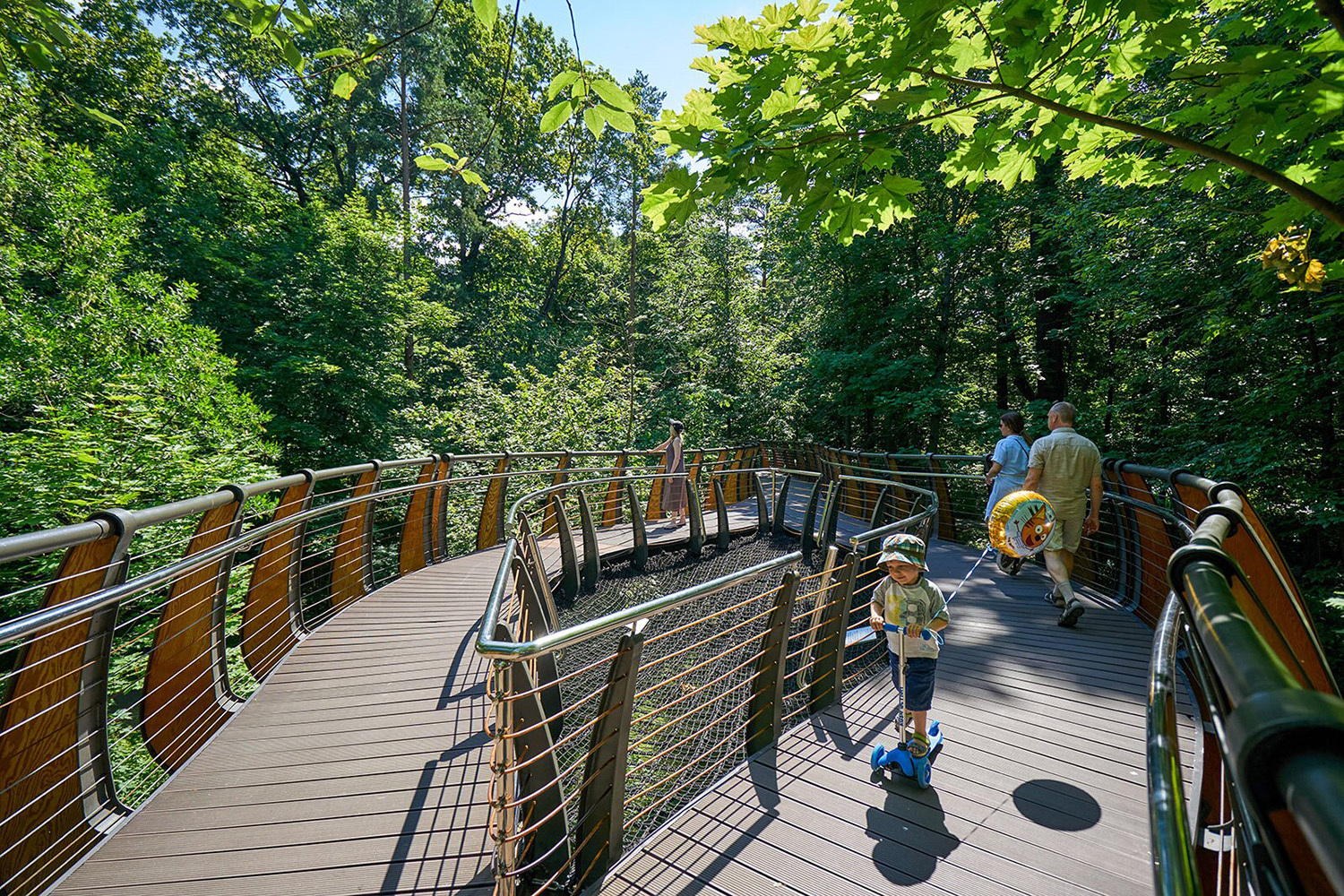 Тропа пролегает через озелененную часть Выставки достижений народного хозяйства и помимо равнинных дорожек включает высотные конструкции со смотровыми площадками.