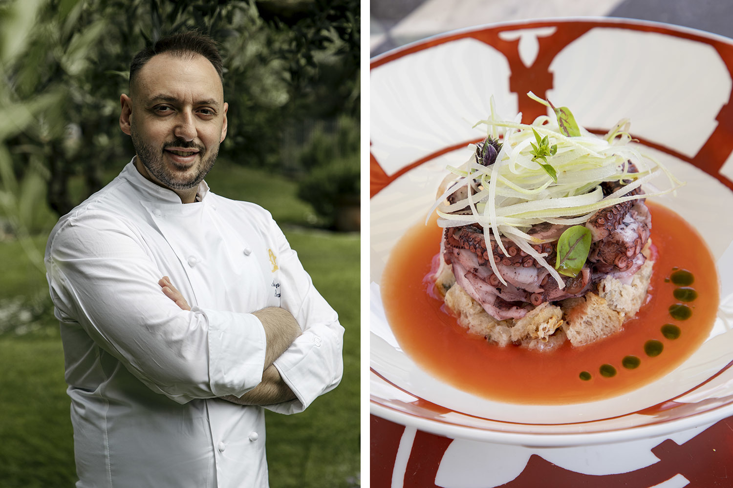 Алессандро характеризует кухню как «чистую и понятную», где вкус блюда является важным акцентом – узнаваемым и безупречным. Таким образом он соединил любовь к красоте и удовольствие от хорошей еды. И его подход совпадает с концепцией отеля: вкус выражается в каждой детали, находит и выделяет прекрасное.