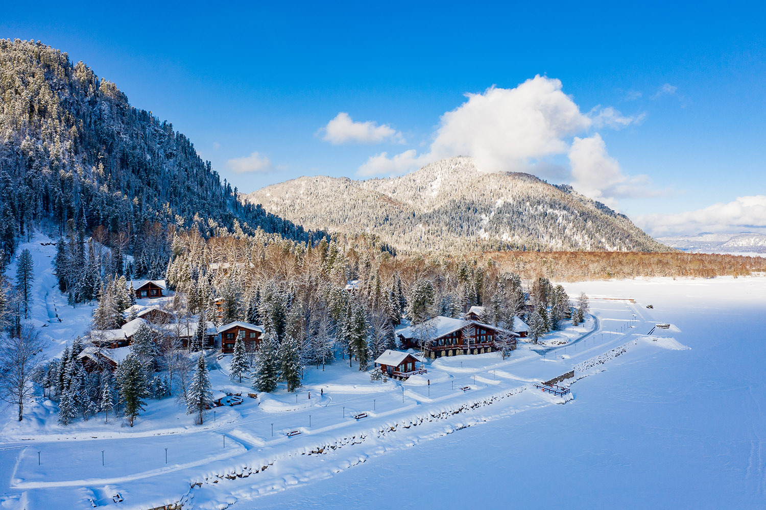 Altay Resort Teletskoe зимой — эстетская альтернатива многолюдному сберовскому «Манжероку». Отель соразмерен природе — это всего 23 шале из массива кедра в тайге, полной эндемиков, на берегу Телецкого озера, охраняемого ЮНЕСКО. В ресторане готовят просто и хорошо из фермерских продуктов — но не обходится без тартара из марала и котлет из тайменя.