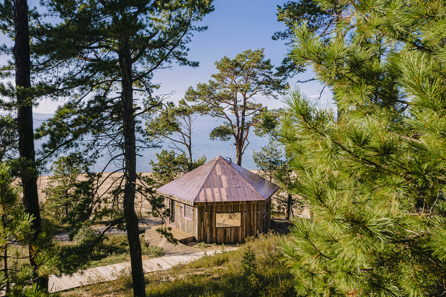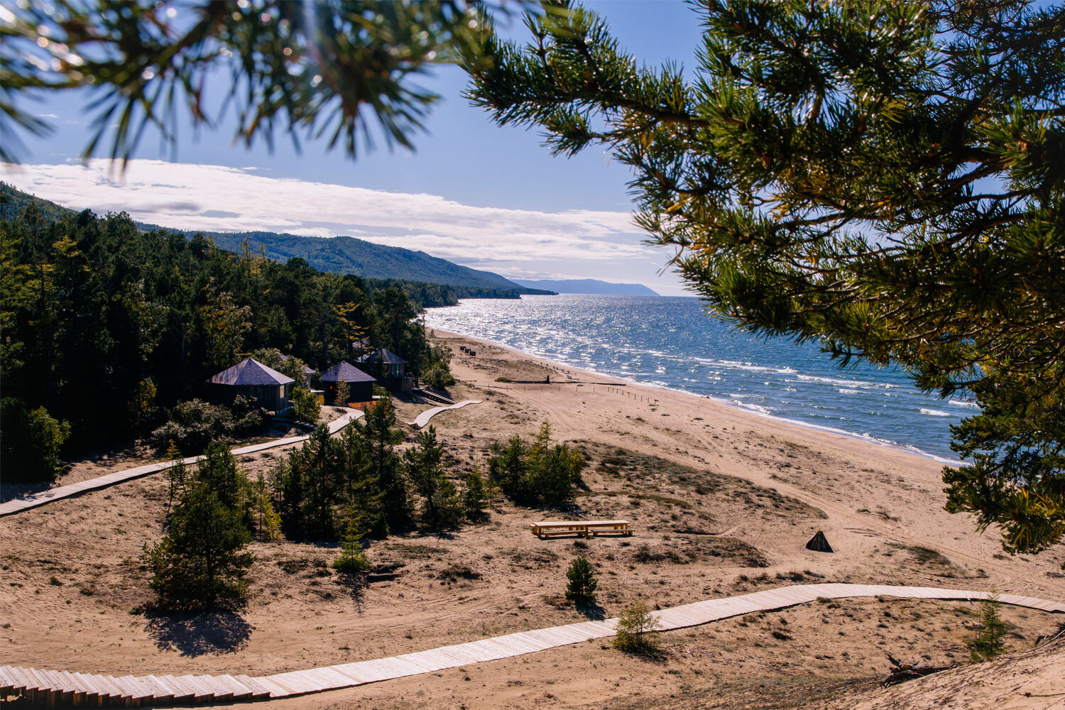 Основатель турбазы «Молодость» Алексей Карахан – неутомимый путешественник с Патриков, в прошлом инвестбанкир. В его первой «Молодости» на Алтае побывали за несколько лет, наверное, все главные герои светской Москвы. А где Карахан, там неизбежно масштабирование: летом 2025 года он открывает еще один отель на Байкале, на территории 13 га на живописном склоне на берегу самого глубокого озера на планете. Единственная береговая линия на Байкале с мелким золотистым песком именно тут. И тут летом, в принципе, как будто Мальдивы: солнечно и +30-35°C, вода прогревается до 25°C, можно купаться целыми днями и загорать в дюнах. И стоит больших трудов поднять себя с шезлонга, чтобы съездить к главному месту силы – на соседний остров Ольхон, он в двух часах на катере.