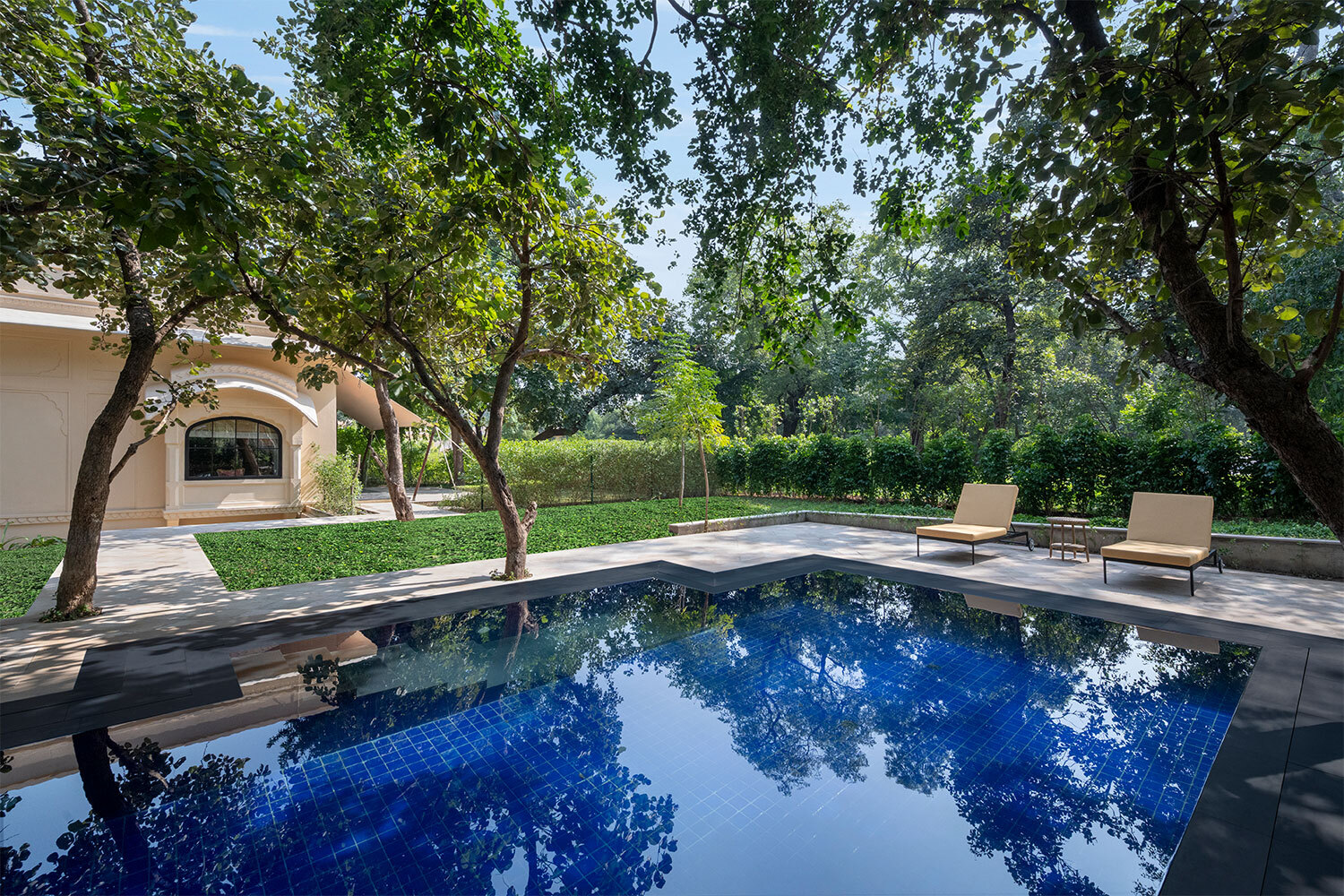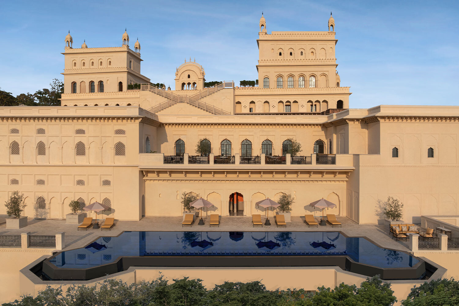 Ещё одна жемчужина в коллекции индийской сети отелей Oberoi Hotels & Resorts — Rajgarh Palace в Кхаджурахо, бережно восстановленный дворец XVII века, спрятанный от посторонних глаз среди лесов и обращённый к живописному озеру