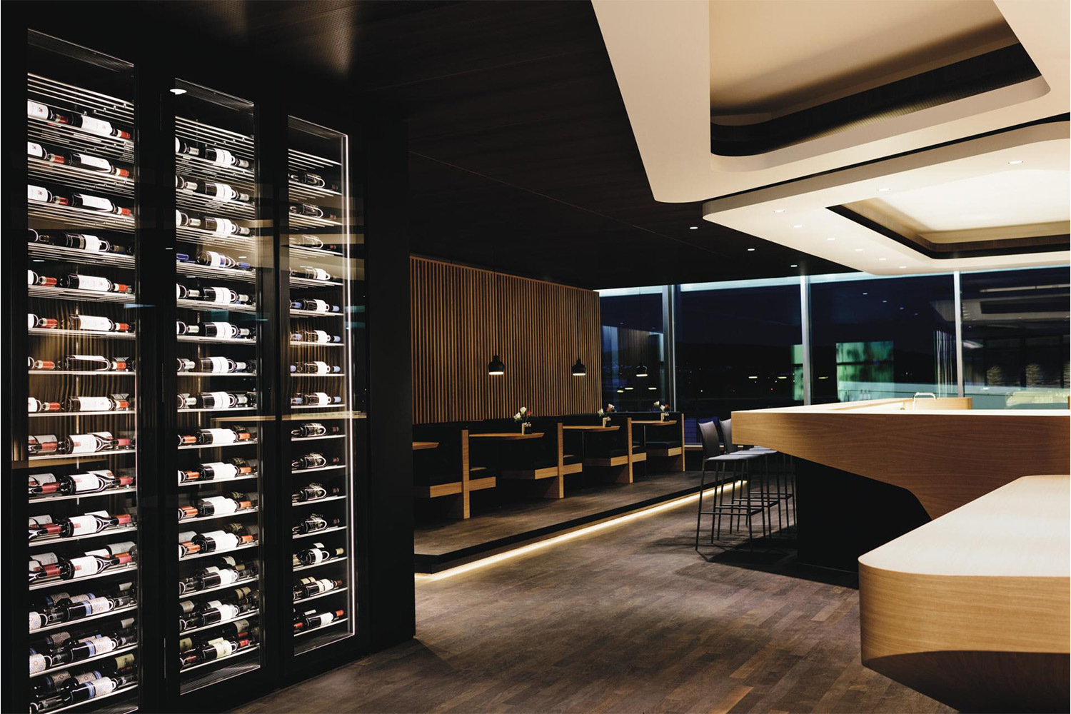 Швейцарская точность и эстетика нашли отражение в лаунже в терминале E. Пространство Swiss First Class Lounge площадью 2 500 квадратных метров спроектировано так, чтобы даже при полной загрузке не было ощущения переполненности. Его главная гордость — два полноценных номера с кроватями Hästens, одного из самых дорогих производителей матрасов и постельных принадлежностей в мире и панорамным видом на Альпы, в которых можно отдохнуть несколько часов. Винный погреб с коллекцией из тысячи наименований и ресторан с белыми скатертями делают этот лаунж одним из самых статусных в мире.