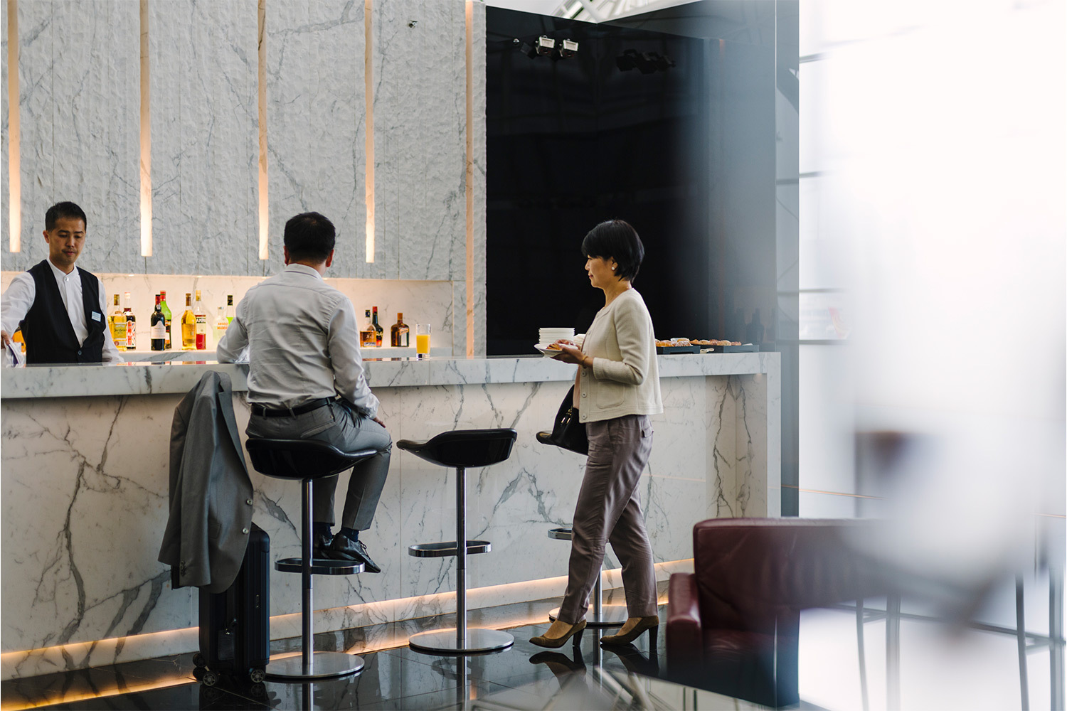 Гонконгский аэропорт — редкий случай, когда одна авиакомпания предлагает два совершенно разных способа провести время до вылета. The Wing — светлое, открытое пространство с рестораном The Haven и закрытыми спа-кабинами: душ, кушетка, полный уход — как в городском спа, только с посадочным талоном в кармане. The Pier существует в другой тональности — это лаунж для тех, кто хочет тишины: индивидуальные сьюты с кушетками, приглушенный свет и массажист по запросу.