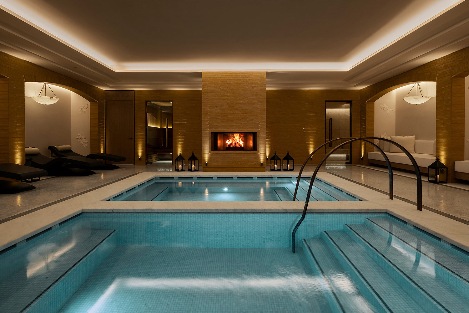 Спа-зона занимает помещение бывшего банковского хранилища. Эта деталь сразу задает тон: широкие своды, тишина, два бассейна, три кабинета процедур, партнерство с тосканским Seed to Skin и лондонским 111Skin. Ни малейшего намека на корпоративный велнес — только очень точное понимание того, что значит восстановиться в городе, где усталость накапливается исключительно от красоты.