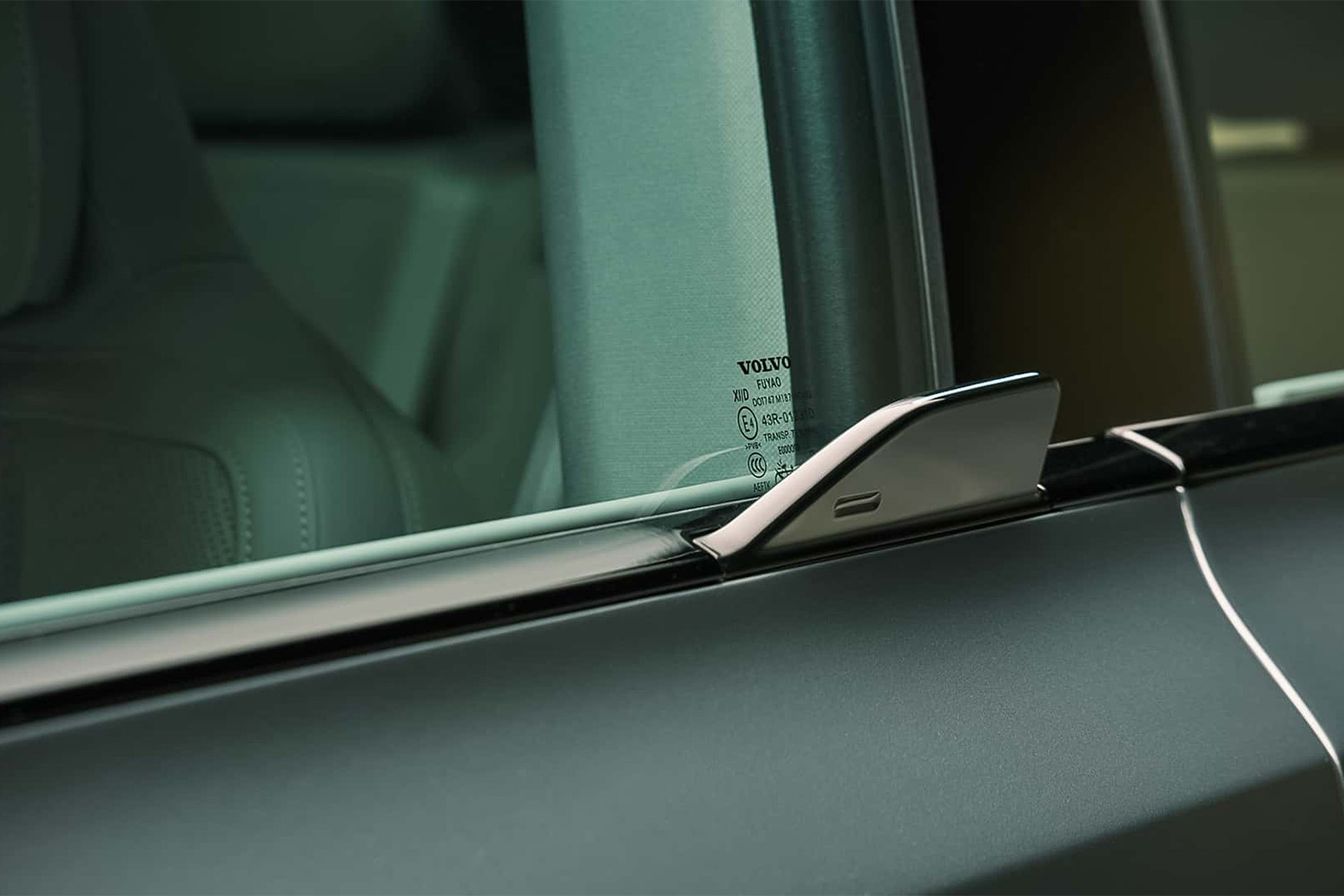 Главная дизайнерская фишка Volvo — уникальные дверные ручки. На первый взгляд, если посмотреть на фото, кажется, что дизайнеры их просто забыли. А если присмотреться к оконной линии, то станут заметны маленькие «плавники»: это и есть дверные ручки, выполняющие заодно аэродинамическую функцию, выравнивая поток воздуха вдоль борта. Это снижает загрязнение боковых стекол и сопротивление воздуху, что крайне актуально для электромобиля.