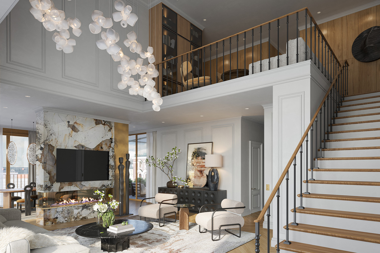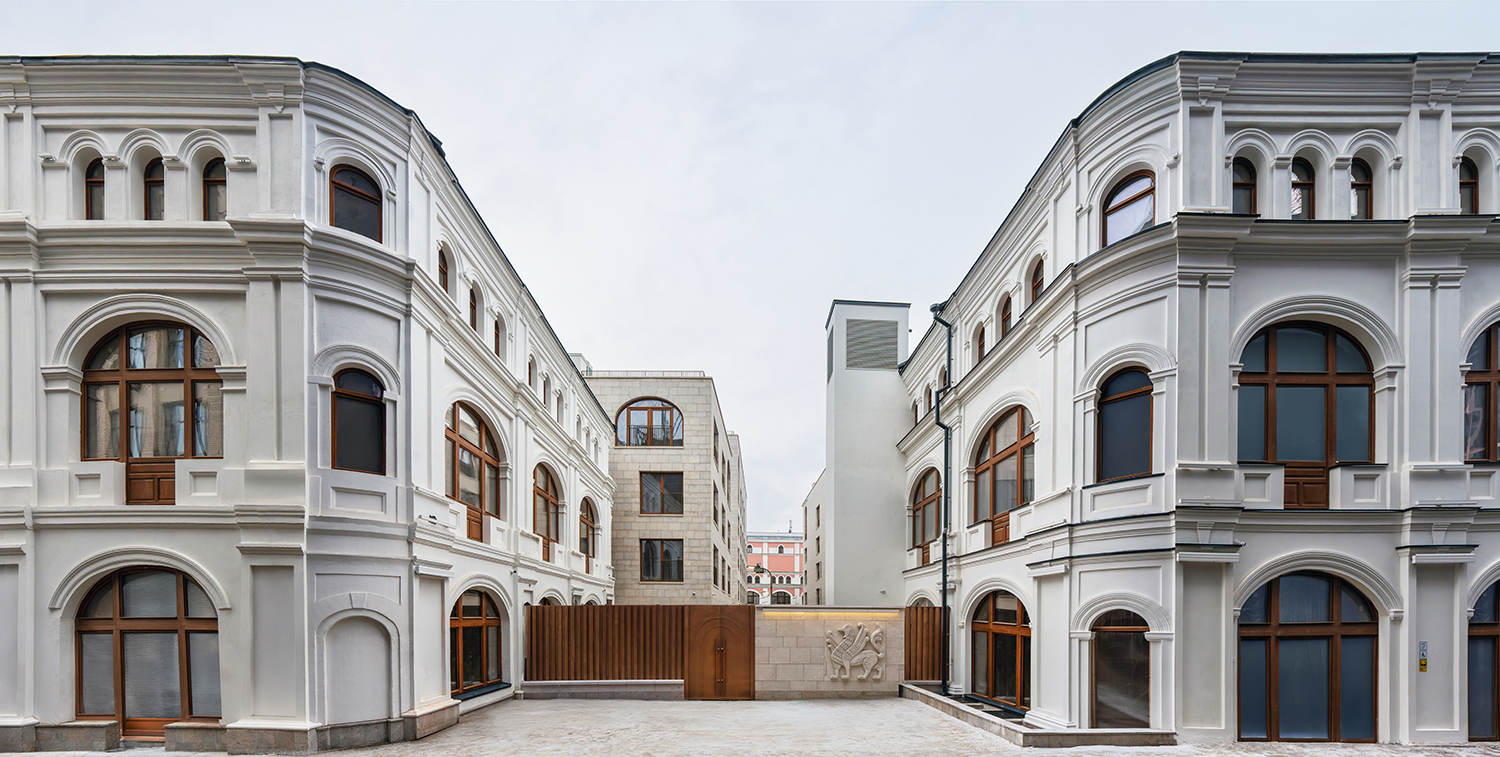 Самые близкие к Красной площади сервисные резиденции «Ильинка 3/8» девелопер Sminex тоже создал в формате à la russe. Сердцем коллекции стали три исторических особняка – бережно отреставрированные здания первых Теплых торговых рядов XIX века, объекта культурного наследия. Потолки высотой до 5,9 метра и дровяные камины создают в них атмосферу княжеских палат. Лобби и холлы украшает серия фотопанно Владимира Клавихо-Телепнева с изображением убранства Теремного дворца в Кремле. Дополняют архитектурный ансамбль четыре современных особняка, облик которых вдохновлен старомосковскими традициями. Например, к основанию их фасады слегка расширяются, что создает ощущение скрытых контрфорсов – внешних опор, с которыми строили на Руси. В каждом здании – от 9 до 22 резиденций. Особняки украшают барельефы мифологических хранителей: грифона, пардуса, льва и птицы сирин. Каменные рисунки изготовлены вручную из геналдонского доломита по мотивам тех, что дополняют облик белокаменного храма времен домонгольской Руси в Юрьеве-Польском. Девелопер оттачивает все свои дома до мелочей, создавая подлинные произведения Fine Development. Здесь есть свой фитнес под древними арочными сводами и камерный сад в духе аристократических городских усадеб, а любые повседневные и особенные просьбы выполняют консьержи собственной службы комфорта. Все как в лучших пятизвездочных отелях: клининг, химчистка, уход за гардеробом, доставка цветов и сервировка праздничного ужина в столовой. Покидать такое место совсем не хочется, но сделать это чуть легче, когда точно знаешь, что вернешься.