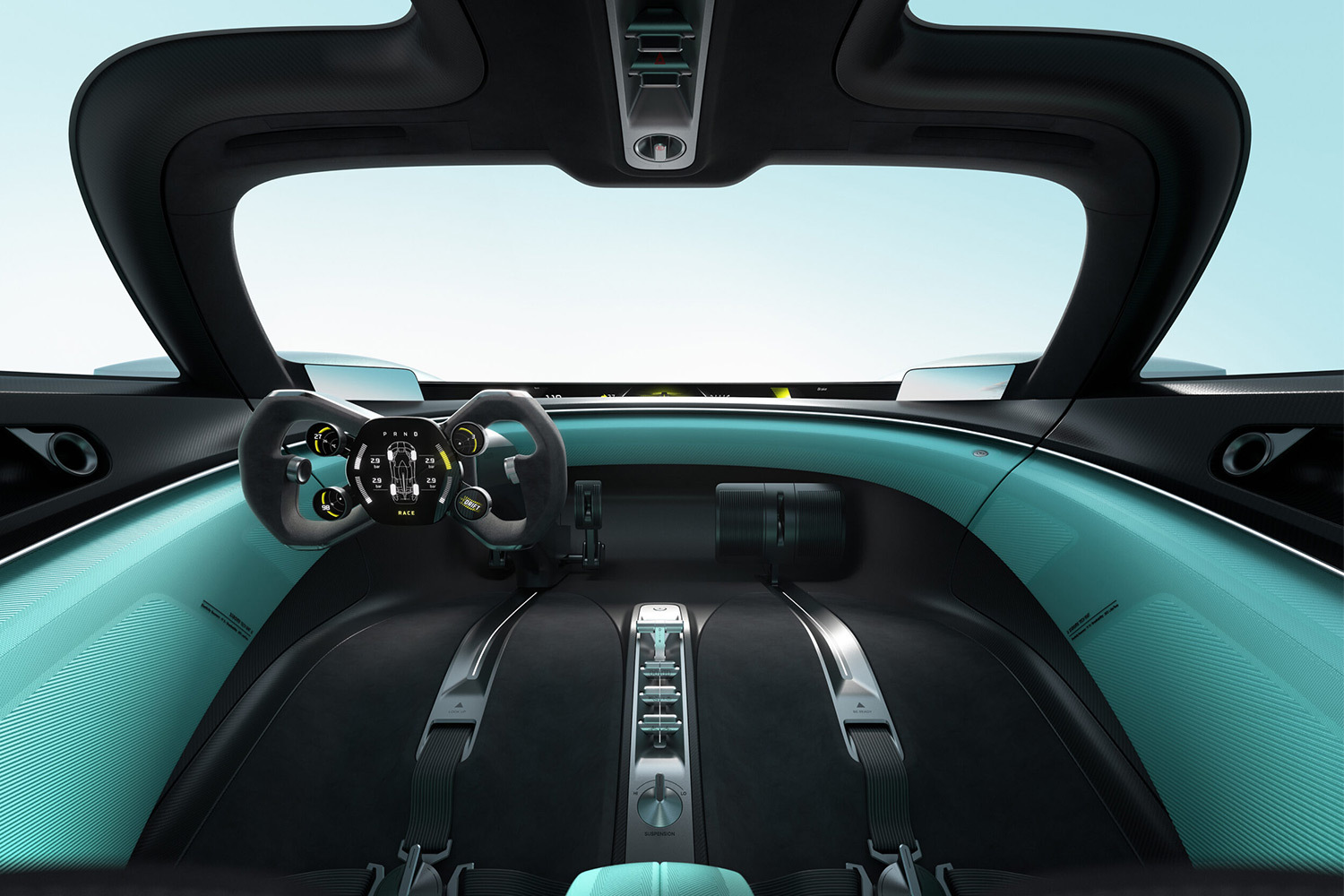 Дизайнеры также полностью продумали интерьер. Он выполнен в стиле Sofa Race. На первый взгляд кресла напоминают диван, но фактически это два ложемента, которые призваны удерживать тело пилота во время движения. Вместо привычного руля — гоночный штурвал, а панель приборов отнесена к основанию лобового стекла. Она доступна для обзора как водителю, так и его виртуальному пассажиру.