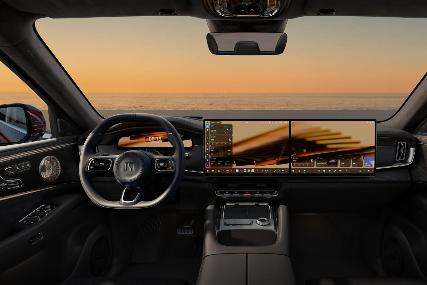 Для водителя, переднего пассажира и задних пассажиров по бокам предусмотрены подогрев, вентиляция и массаж сидений. Задние пассажиры могут откинуться в положение нулевой гравитации — колени поднимаются до уровня сердца, тело максимально расслабляется. Водитель, в свою очередь, может регулировать уровень боковой поддержки кресла. В спинки передних сидений встроены откидные столики, а в центральной консоли спрятан холодильник с функцией подогрева. Всего в салоне насчитывается 50 отсеков и ниш разного размера — так что потерять там вещи проще, чем найти.