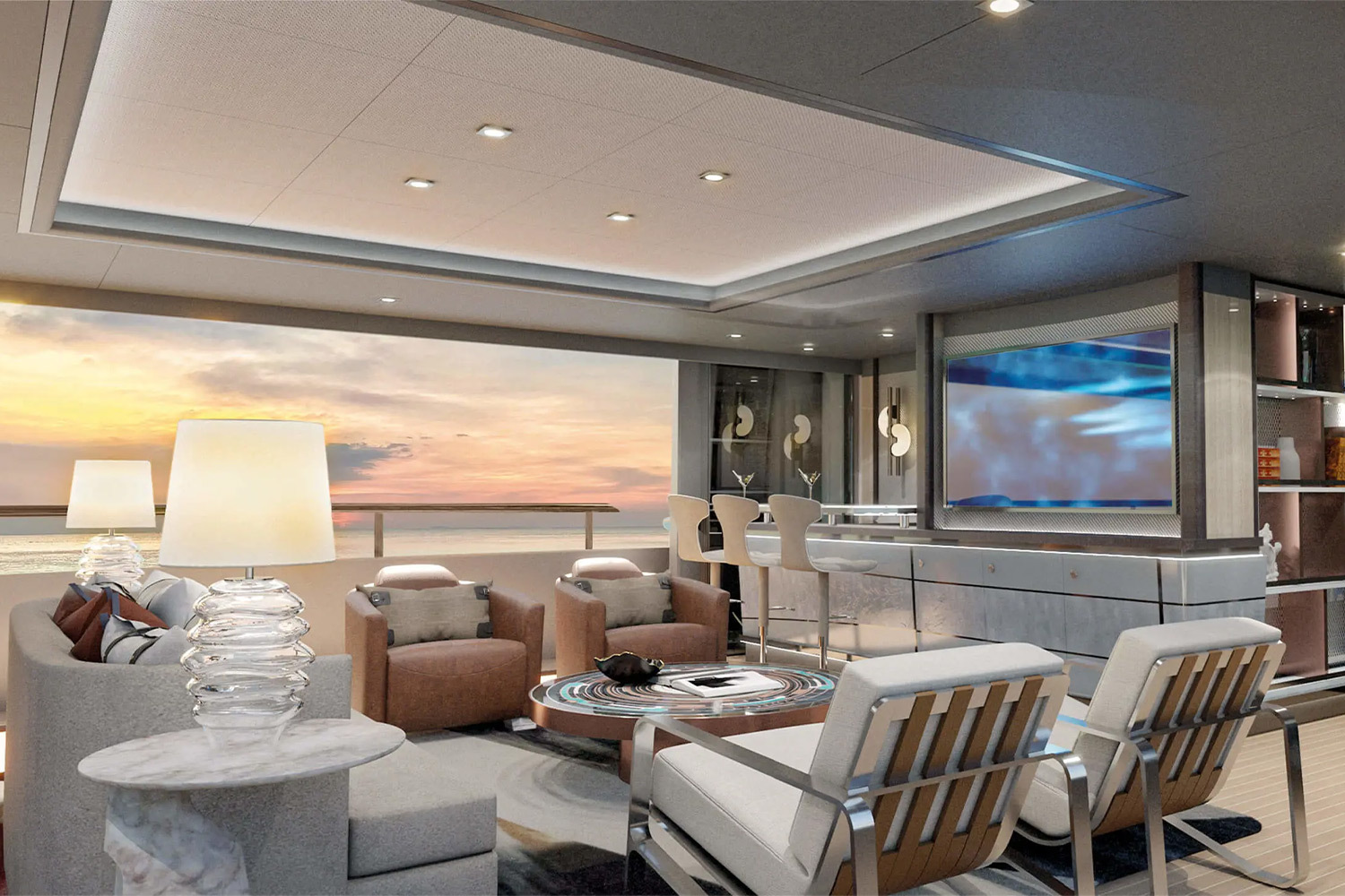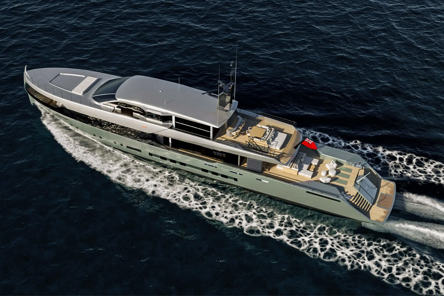 За интерьеры отвечает сама верфь — и здесь принципиально отказались от привычных яхтенных клише. Зоны получают названия в лаконичной, почти «служебной» манере, а планировка подчинена логике пространства, а не традиции. Каюта владельца занимает всю ширину корпуса и выходит на приватный кокпит с джакузи. Кормовая пляжная зона трансформируется в лаунж, домашний кинотеатр или спортзал — в зависимости от настроения. Смелость проекта подчеркивает и то, что Ares строит яхту без заказчика, рассчитывая найти покупателя уже в процессе.