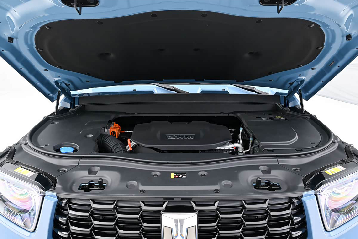 Получилась схема, похожая на ту, что используется на кроссоверах Wey 07, только с мотором на 252 л. с. Он может подключаться к передним колесам через 3-ступенчатую коробку передач, а задние приводит в движение отдельный электродвигатель. Настроить на преодоление жесткого бездорожья такую схему крайне сложно, к тому же в ней нет межколесных блокировок. Но зато на асфальте монструозный внедорожник способен потягаться в динамике со спорткарами, а запас хода вырос до 1191 км.