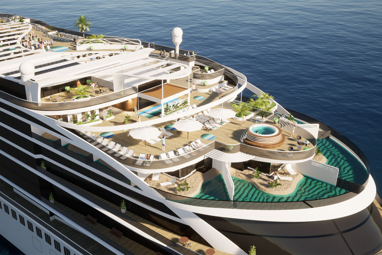Для комфорта 1856 пассажиров — а именно такова вместимость лайнера — есть все необходимые развлечения, включая крытый аквапарк.Meyer Werft