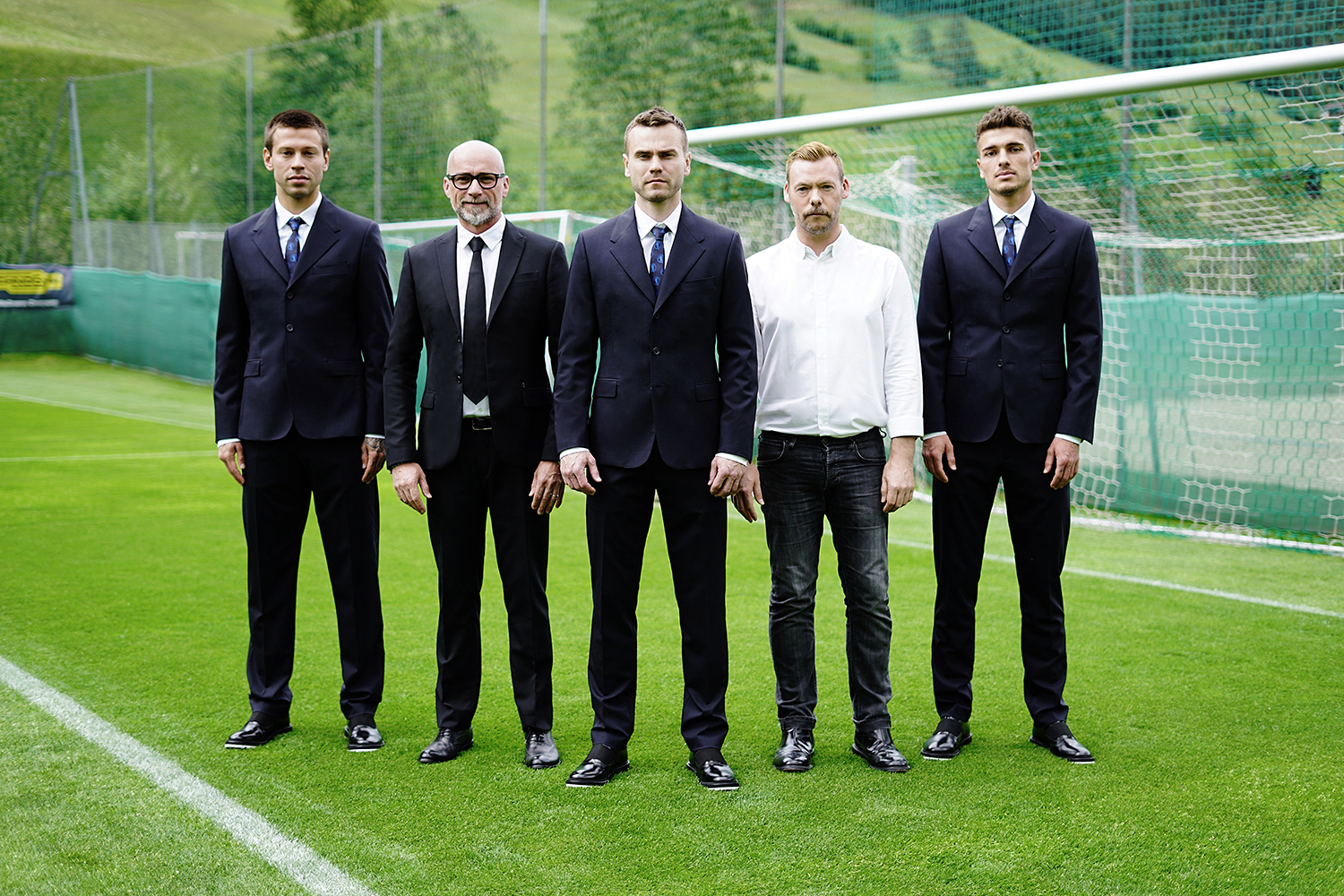В коллекцию вошли приталенный пиджак на три пуговицы, зауженные брюки с комфортной посадкой, белоснежная хлопковая рубашка и галстук с логотипом бренда. Завершают образ классические дерби из мягкой телячьей кожи и ремень. «Мы создали костюмы для современных атлетов – футболистов. И счастливы воссоединиться с миром спорта», – говорит Ли Вуд, креативный директор Dirk Bikkembergs.