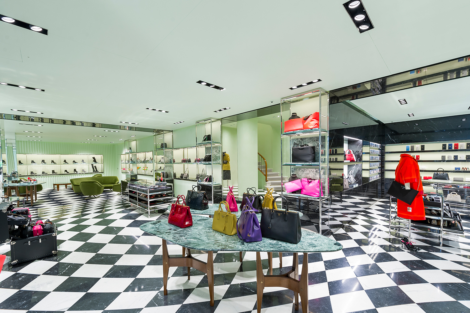 Мебель и дизайн созданы специально для бутика итальянскими архитекторами Освальдо Борсани и Джио Понти.