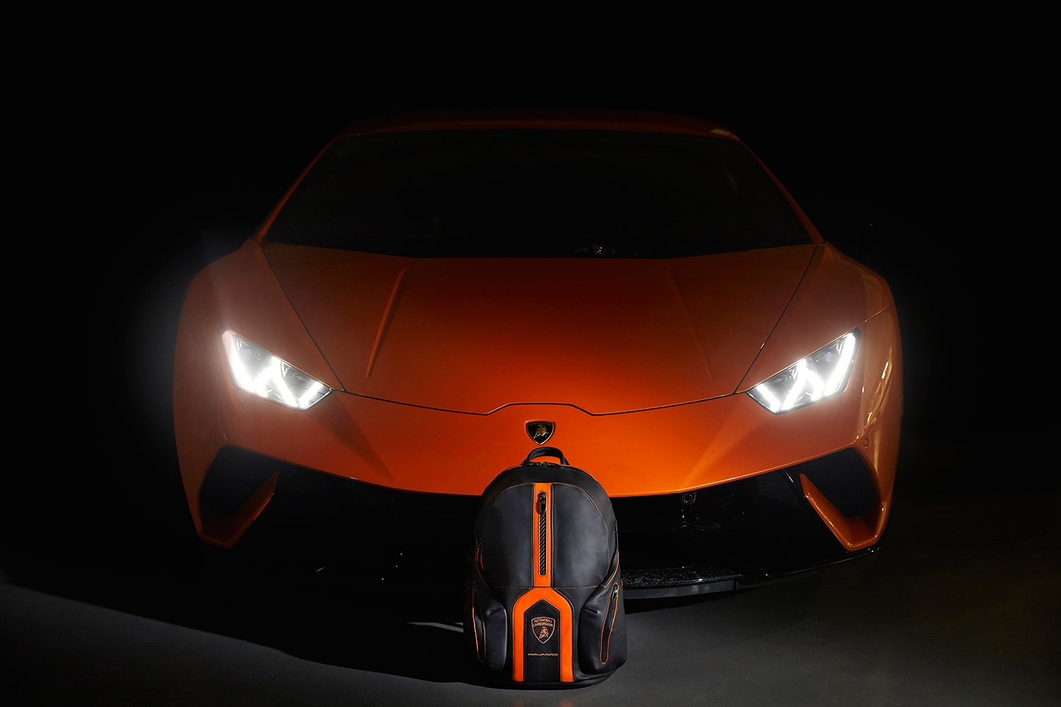 Каждая деталь вдохновлена дизайном спортивного автомобиля: рюкзак украшен оранжевой вставкой спереди, которая напоминает букву Y в дизайне Lamborghini. Модель оснащена функцией Piquadro Bagmotic, позволяющей взаимодействовать через мобильный телефон. (Благодаря приложению Connequ рюкзак можно подключить через Bluetooth к смартфону, и в случае потери или кражи рюкзака, сработает сигнализация).