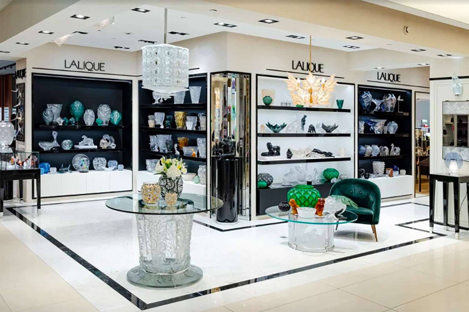 Интерьер обновленного корнера Lalique выдержан в черно-белой гамме