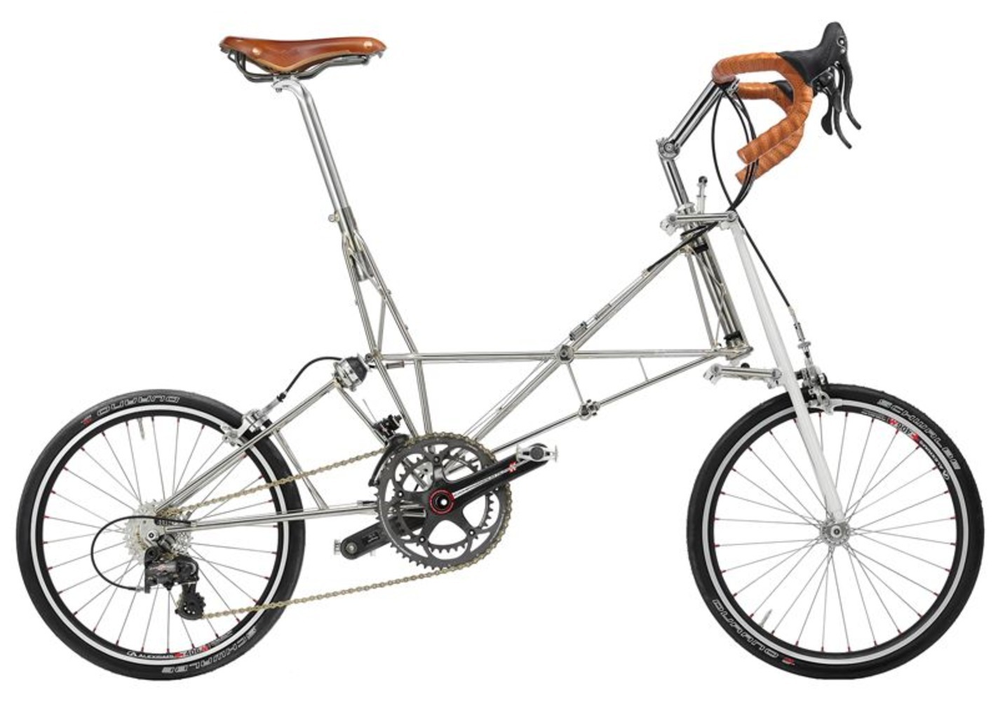 Это модель британской марки Moulton, основанной в 1962 году. Примечательно, что первый же велосипед, придуманный основателем компании, Алексом Мултоном, (который прежде, чем заняться велосипедами, работал над дизайном автомобиля Mini), назвали «велосипедом будущего»!