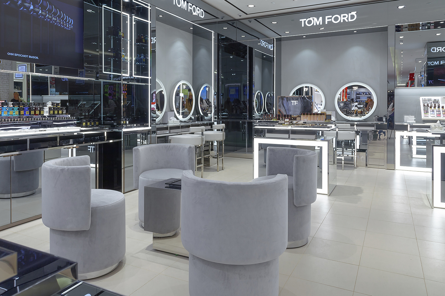 Кроме того, в корнере можно протестировать энергетический массаж для лица Tom Ford Skin или услугу для создания красивых бровей Tom Ford Brows.