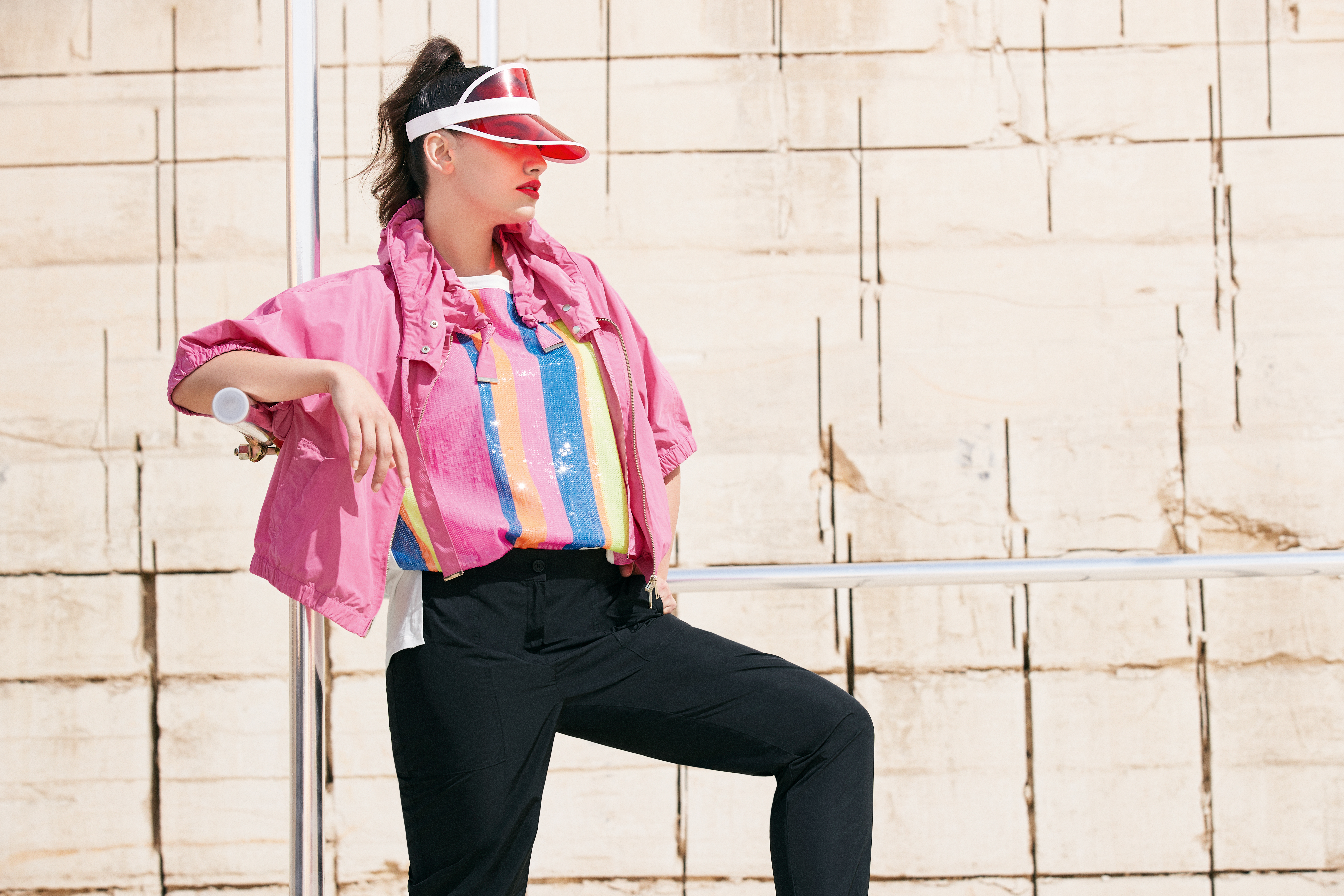 Источником вдохновения для коллекции послужил мир кайтсерфинга, ассоциирующийся с морем, солнцем, ветром. Леггинсы, топы, ветровки украшены графическими рисунками в черно-белой гамме, дополненной яркими акцентами оранжевого, синего и желтого.