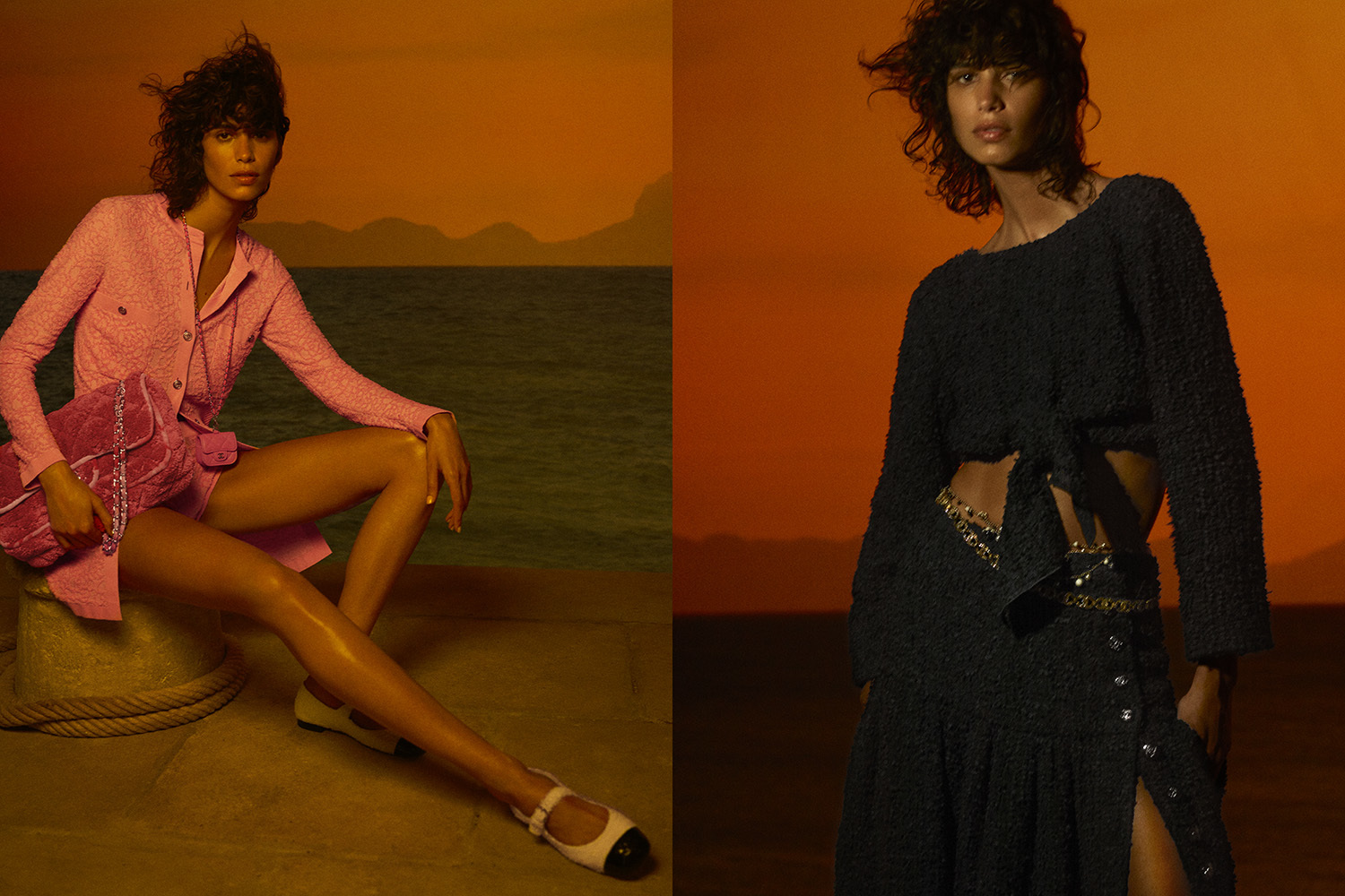 «Изначально в своем воображении я представляла образ Капри – именно там мы задумывали провести и премьеру этой коллекции, – призналась Виржини Виар, креативный директор Дома Chanel. – Но в итоге нам пришлось приспосабливаться к новой ситуации: не только использовать лишь те ткани, что мы успели закупить, но и обобщить тему коллекции до Средиземноморья с его многочисленными островами, ароматом эвкалипта и тенью от бугенвиллеи...»