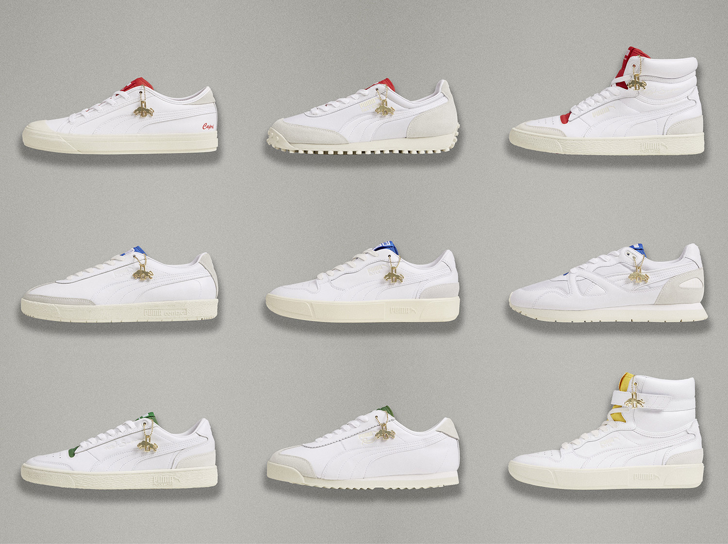 В капсулу вошли «исторические» модели кроссовок Puma, выполненные из белой кожи: Fast Rider, Sky Lo и Mid, Сapri, Mirage, Ralph Sampson Lo и Mid, Oslo City и Roma ’68.