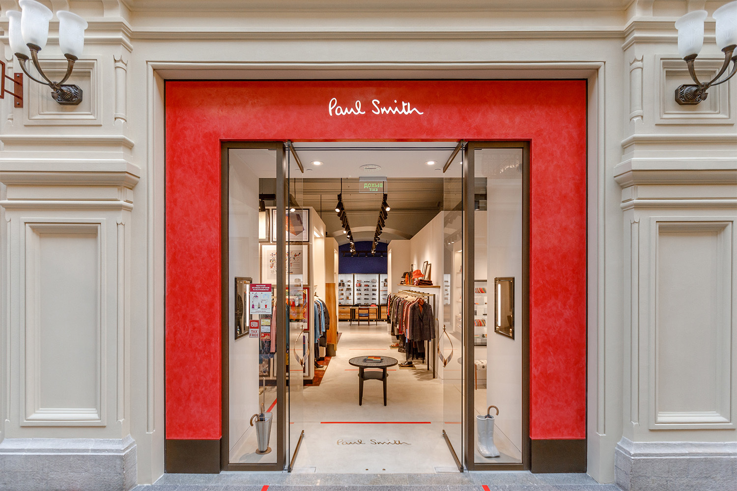 Пространство бутика Paul Smith площадью 197 кв. м включает в себя ряд характерных для этого исторического здания элементов: сводчатый потолок, фасад с деревянным обрамлением у одного входа. А второй вход оформлен в фирменном дизайне Paul Smith – с красной отделкой и бронзовыми деталями.