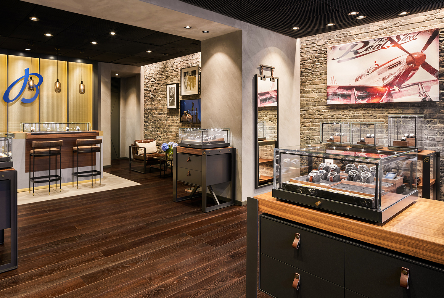 Интерьер бутика вдохновлен наследием компании и ее тесными связями с авиацией, декоративная отделка помещений и выполненная на заказ мебель воссоздают стилистику индустриального лофта в динамичной городской среде. Все эти элементы воспроизводят стиль, который в Breitling характеризуют как «современное ретро».