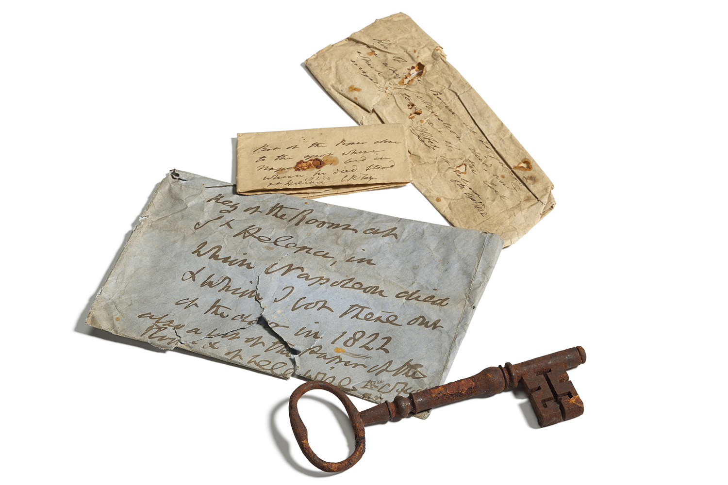 Считается, что британский генерал Чарльз Ричард Фокс (1796–1873) вывез ключ из Лонгвуд-Хауса – роскошной резиденции, построенной британцами для изгнанного императора в качестве тюрьмы на острове Св. Елены. Позднее Фокс подарил его своей матери Элизабет Вассалл-Фокс, баронессе Холланд, которая была поклонницей Наполеона и переписывалась с ним во время его ссылки. Ключ обнаружен недавно в сундуке в одном шотландском доме. К нему прилагается записка: «Ключ от комнаты на острове Св. Елены, в которой умер Наполеон и из двери которой я его вынул в 1822 году».