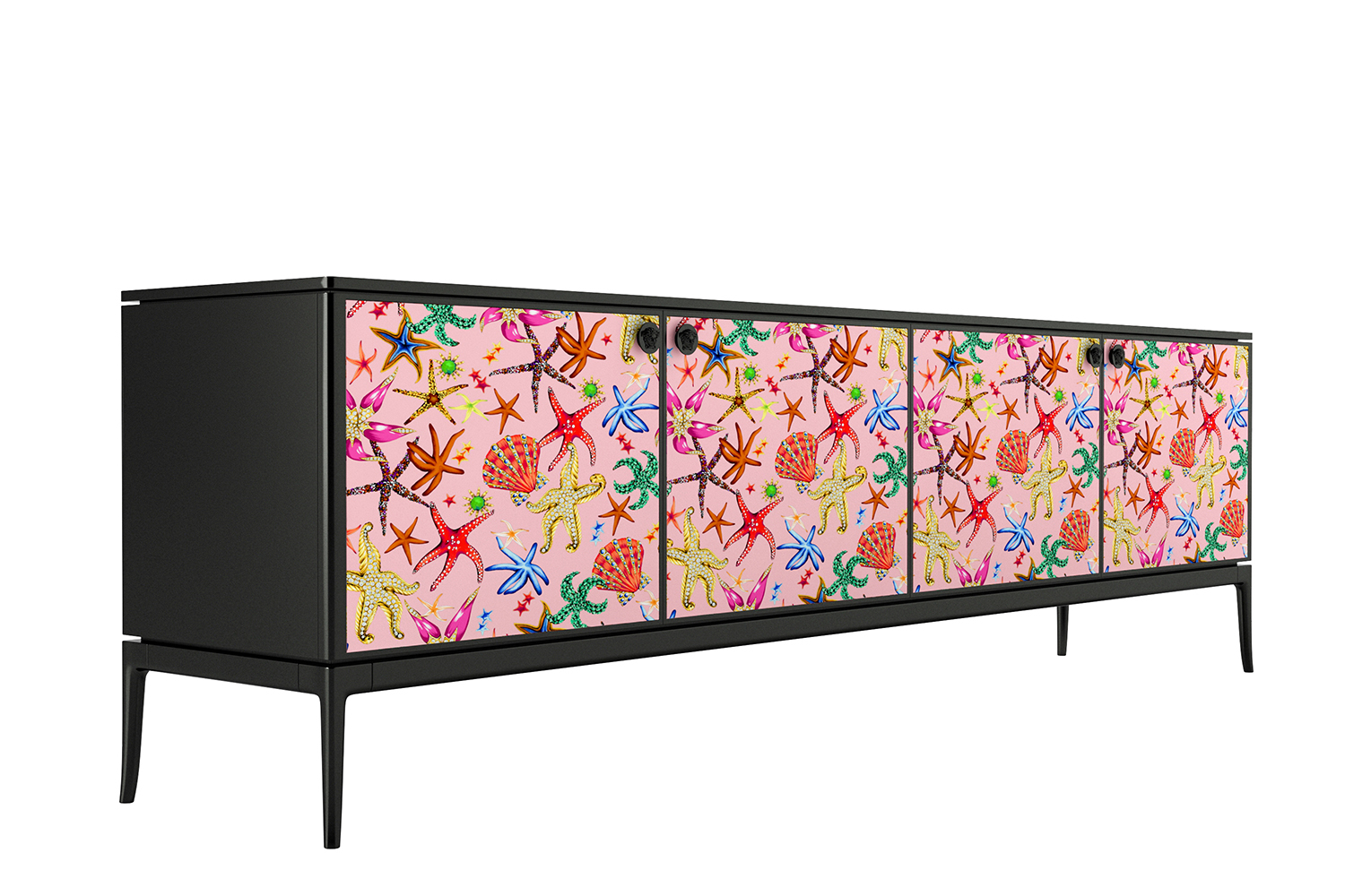 Интерьерная концепция прошла модернизацию – это касается и стиля, и принтов, и цветовой гаммы. Среди ключевых вещей новой коллекции – кресло Venus с черной кожаной обивкой и фирменным логотипом с изображением Медузы; диван Goddess, доступный в комплекте с модулем-шезлонгом; шкаф Stiletto из лакированного дерева и многослойного стекла и др.