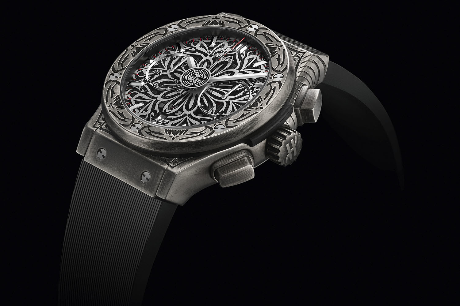 Это уже второй совместный проект партнеров, но если для корпуса и циферблата первой модели Big Bang Meca-10 Shepard Fairey 2018 года мастер граффити и street-art придумал особый принт из карбона и тексалиума, то на этот раз он создал скорее настоящий арт-объект из титана, который можно носить на запястье.