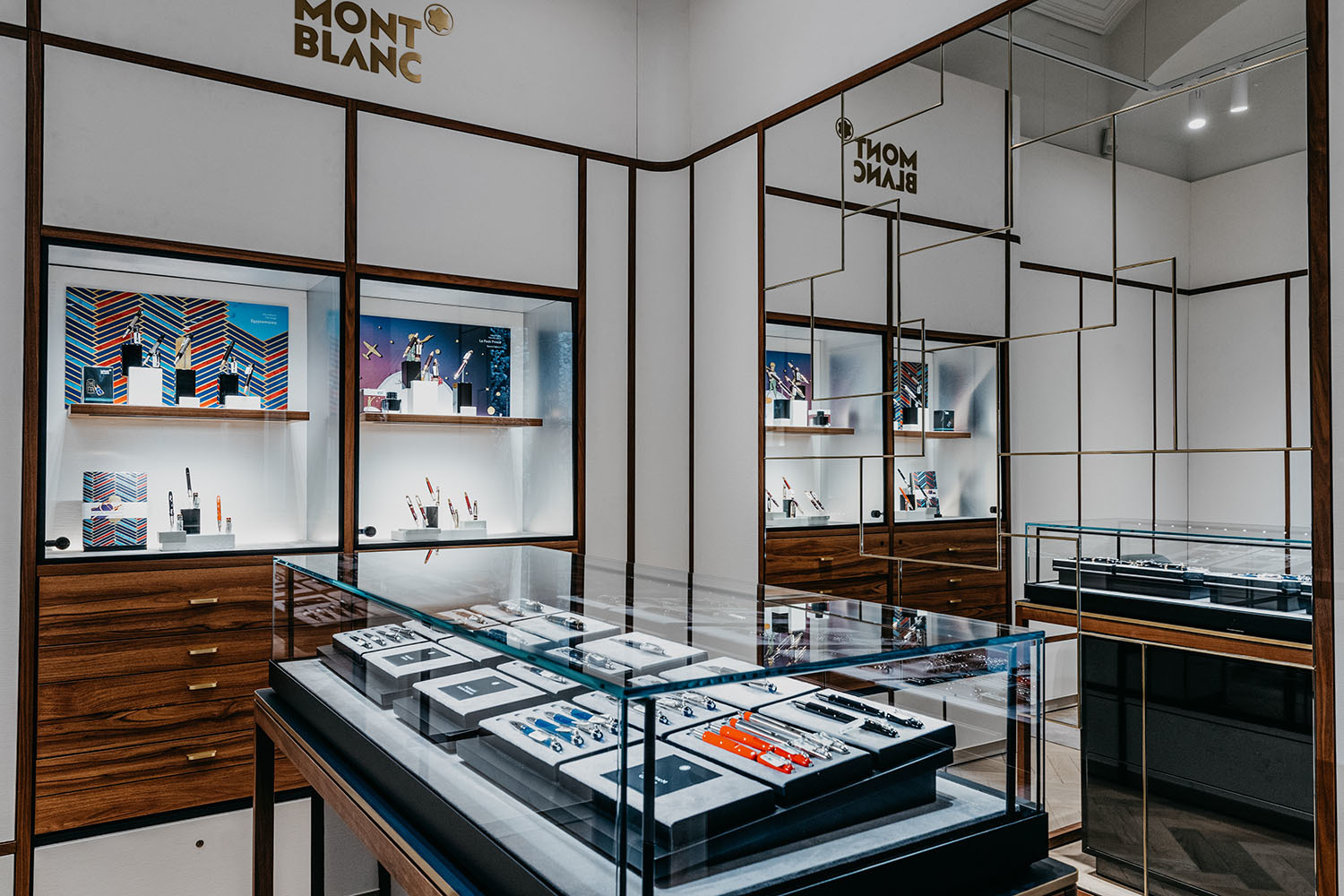 Дизайнеры бутика предлагают его посетителю совершить путешествие с возможностью погружения в разные сферы деятельности Montblanc – создание пишущих инструментов, кожаных аксессуаров и наручных часов. Этот иммерсивный опыт сочетает в себе цифровые технологии, storytelling и демонстрацию секретов мастерства, насколько позволяет пространство нового магазина.