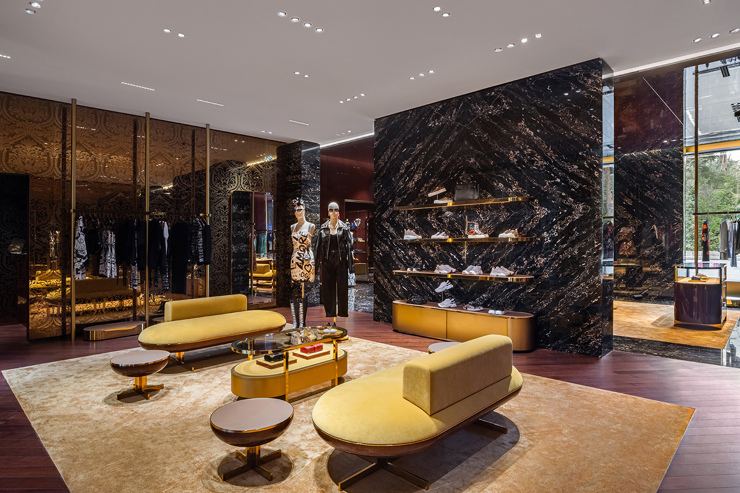 В новом бутике Dolce & Gabbana площадью 730 кв. м представлены мужские и женские коллекции одежды, сумки, обувь и аксессуары.