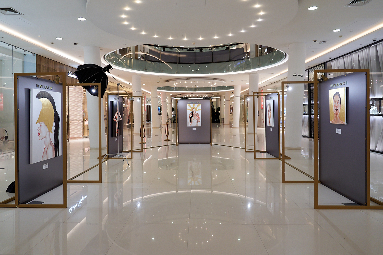 Выставка «Женщина. История. Метаморфозы» расположилась в пространстве перед поп-ап бутиком Bvlgari