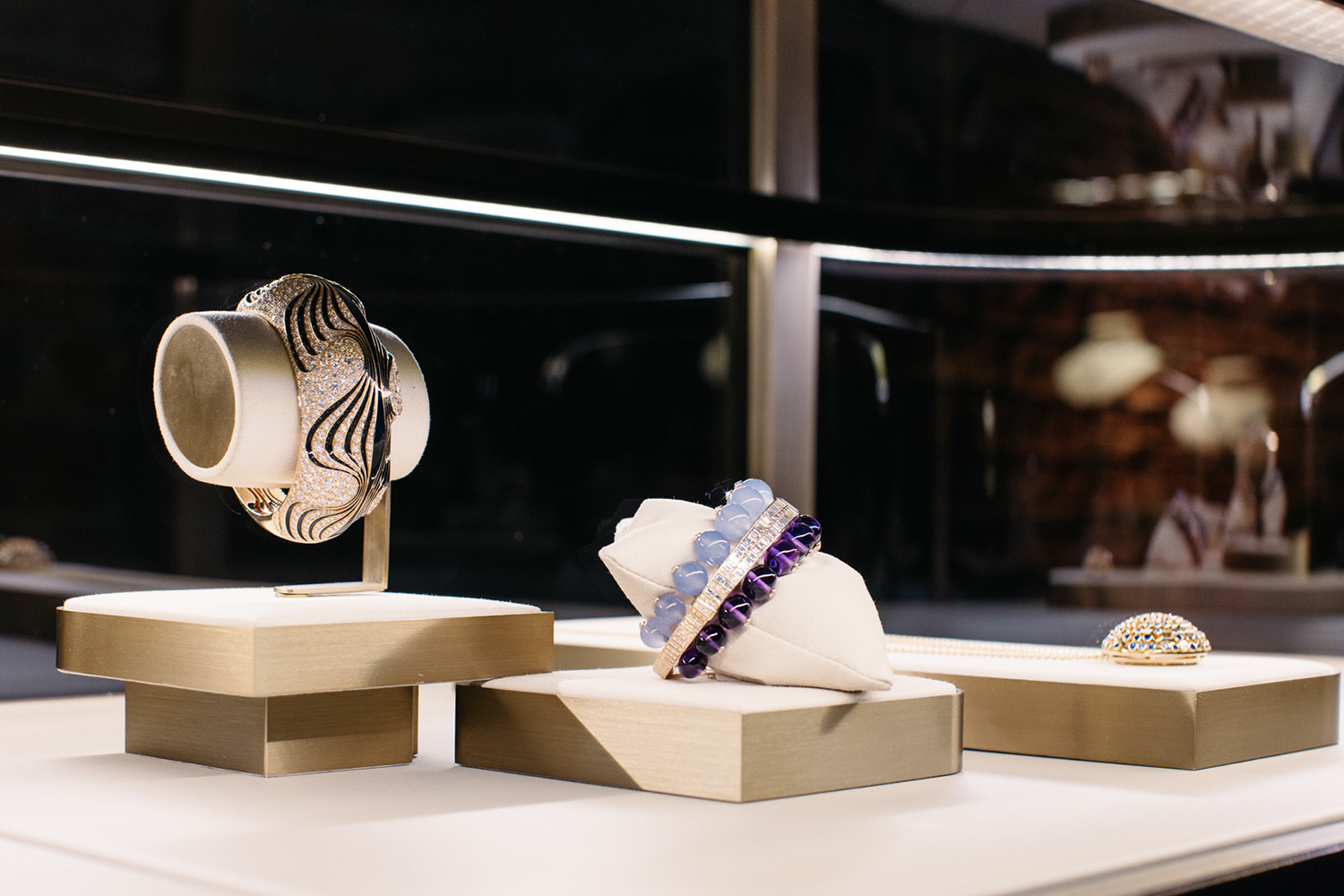 Французский ювелирно-часовой Дом Cartier представил в галерее «Цифергауз» в историческом «Доме 12» выставку высокого ювелирного и изящного искусства Sounds of Cartier. Ювелирные украшения выступили в диалоге с аудиовизуальной инсталляцией, созданной российским художником Сергеем Филатовым специально для этой экспозиции.