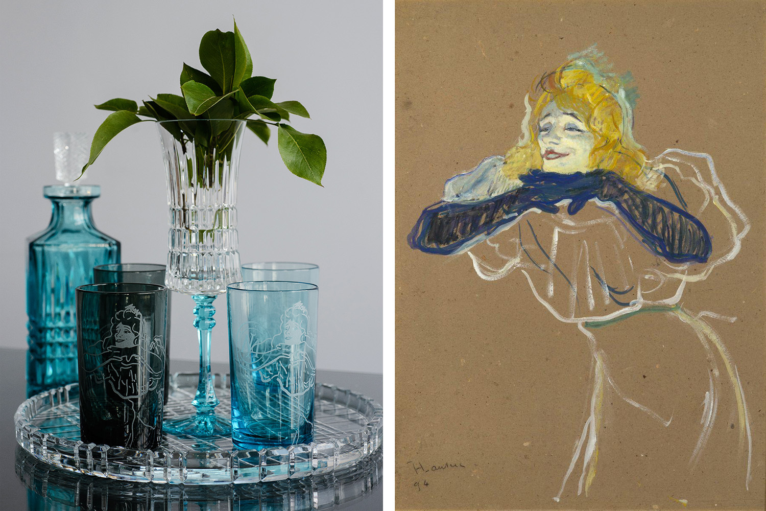 Эта лимитированная серия вдохновлена конкретной работой художника Анри де Тулуз-Лотрека – портретом «Певица Иветт Гильбер в момент исполнения песенки "Linger, Longer, Loo"» (1894) из собрания Михаила Морозова. Теперь хорошо узнаваемый силуэт звезды парижских кабаре «Мулен-Руж» и кафе-концерта «Фоли-Бержер» начала прошлого столетия можно видеть не только на выставке, но и на хрустале.