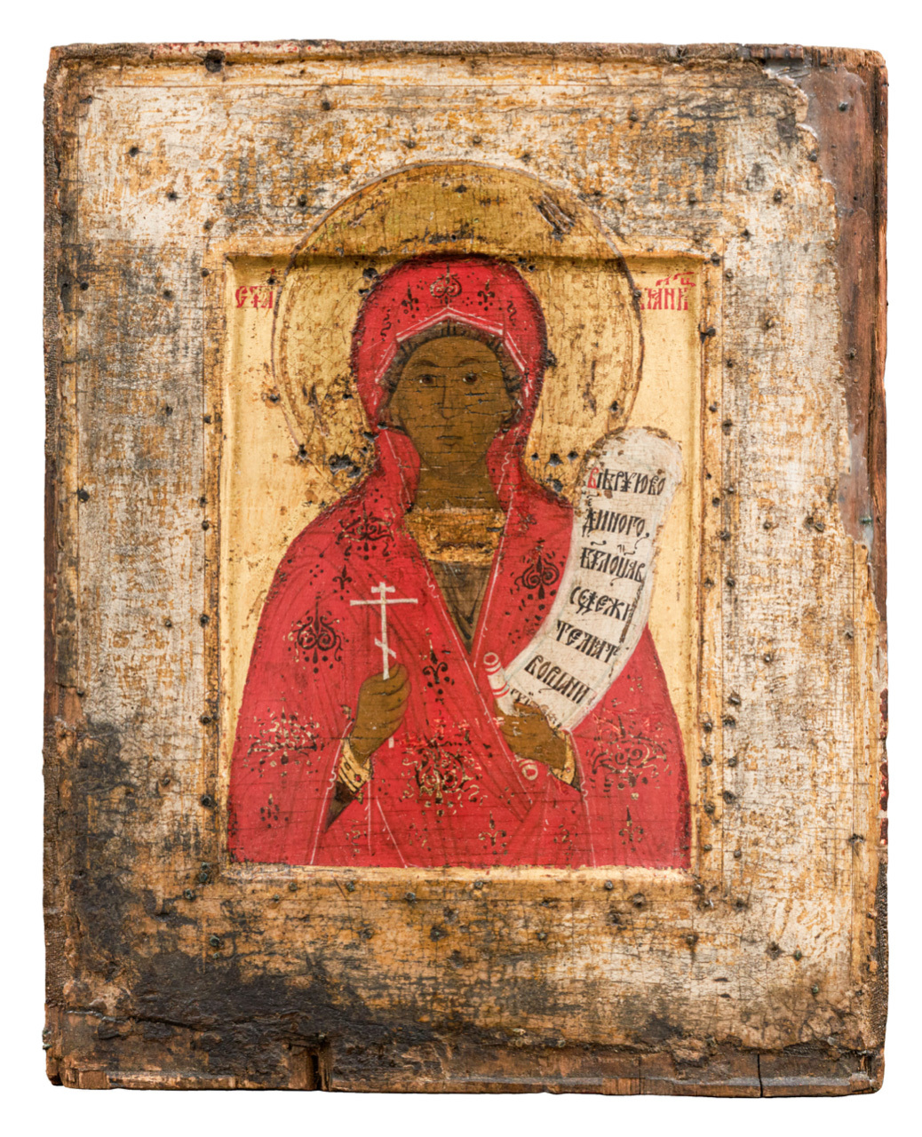 Не менее значимый артефакт на аукционе – образ «Великомученицы Параскевы Пятницы», покровительницы торговли и ремесел, второй половины XVI века, написанную среднерусским мастером, в редком серебряном окладе первой трети XVIII века, со стартовой стоимостью в 1,2 млн руб.