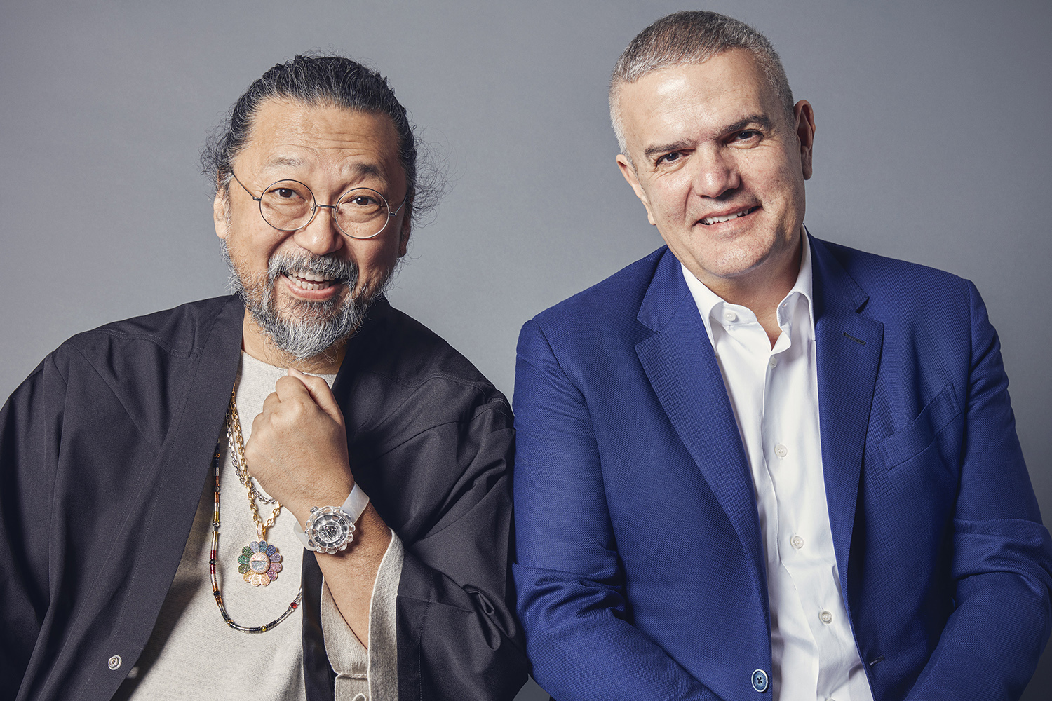 Механизм окружен культовым мотивом Такаси Мураками – цветком из 12 лепестков, на этот раз, естественно, полностью из сапфирового стекла. При всей серьезности механизма это произведение часового искусства имеет вполне озорной характер: у фирменного цветка Мураками есть «глаза» и широкая улыбка.