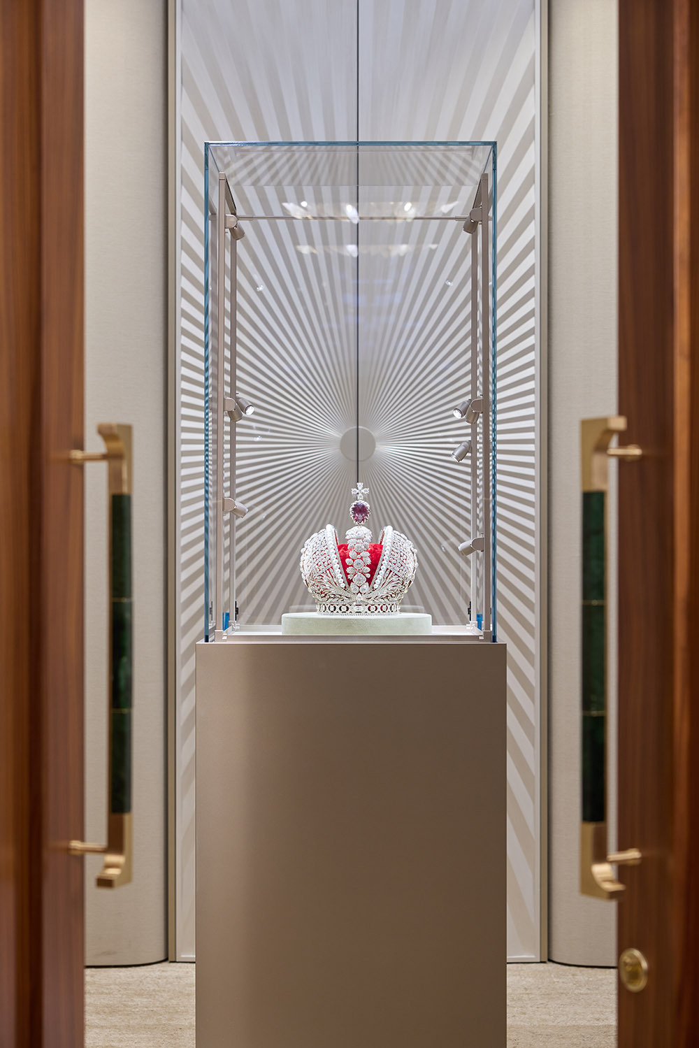 Для полного погружения в историю короны необходимо предварительно записаться на визит в бутик, который расположен в гостинице «Метрополь» по адресу: Театральный проезд, 2.