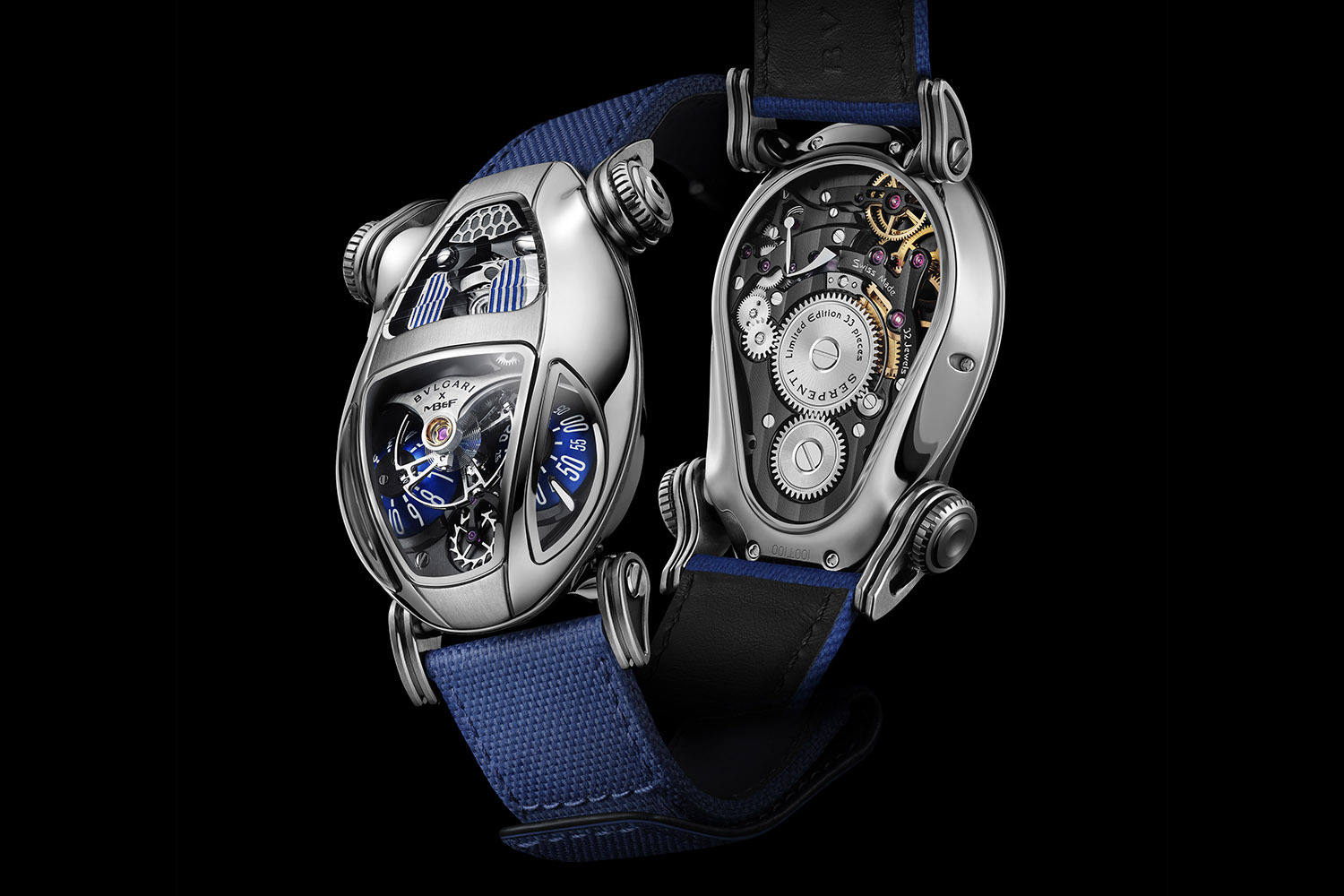 Часы Bvlgari x MB&F Serpenti представлены тремя лимитированными сериями в 33 экземпляров каждая.