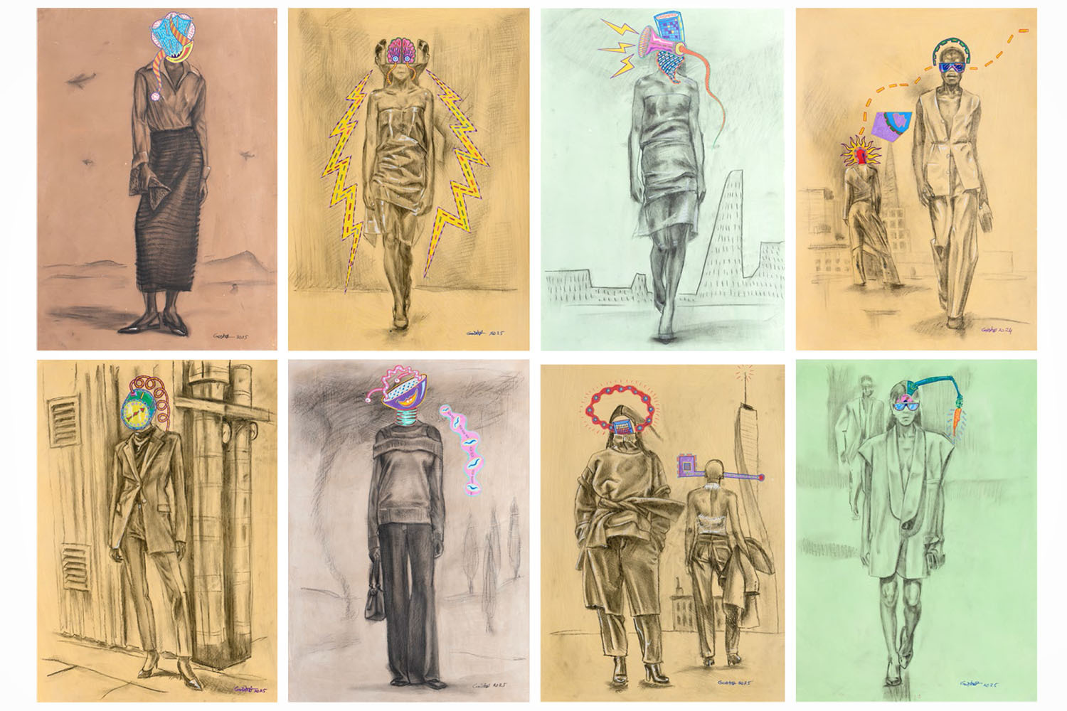 Другие произведения, созданные Гошей Острецовым в технике живописи по ткани специально для данного проекта, предлагают зрителю подумать о стирающихся границах между модой и искусством. Двигаясь вверх по этажам, зритель встретится с работами, близкими по стилю к красочным комиксам и стрит-арту – это знаковая манера Гоши Острецова. Произведения объединены темой многостороннего внедрения искусственного интеллекта в современную жизнь. Здесь роботы органично сосуществуют с людьми в новом мире, где живые и искусственные индивиды разделены по гендерному принципу.