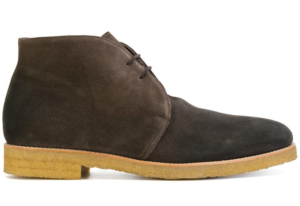 Ботинки чукка или «дезерты» — это модель с двумя парами отверстий для шнурков, которую обычно делают из замши и снабжают креповой подошвой (по-нашему — «манка»). Пришедшие из времен Второй мировой, сегодня они служат мостом между классикой и чистым кэжуалом. Впрочем, замшевый верх все равно потребует ухода, особенно в дождливые сезоны.