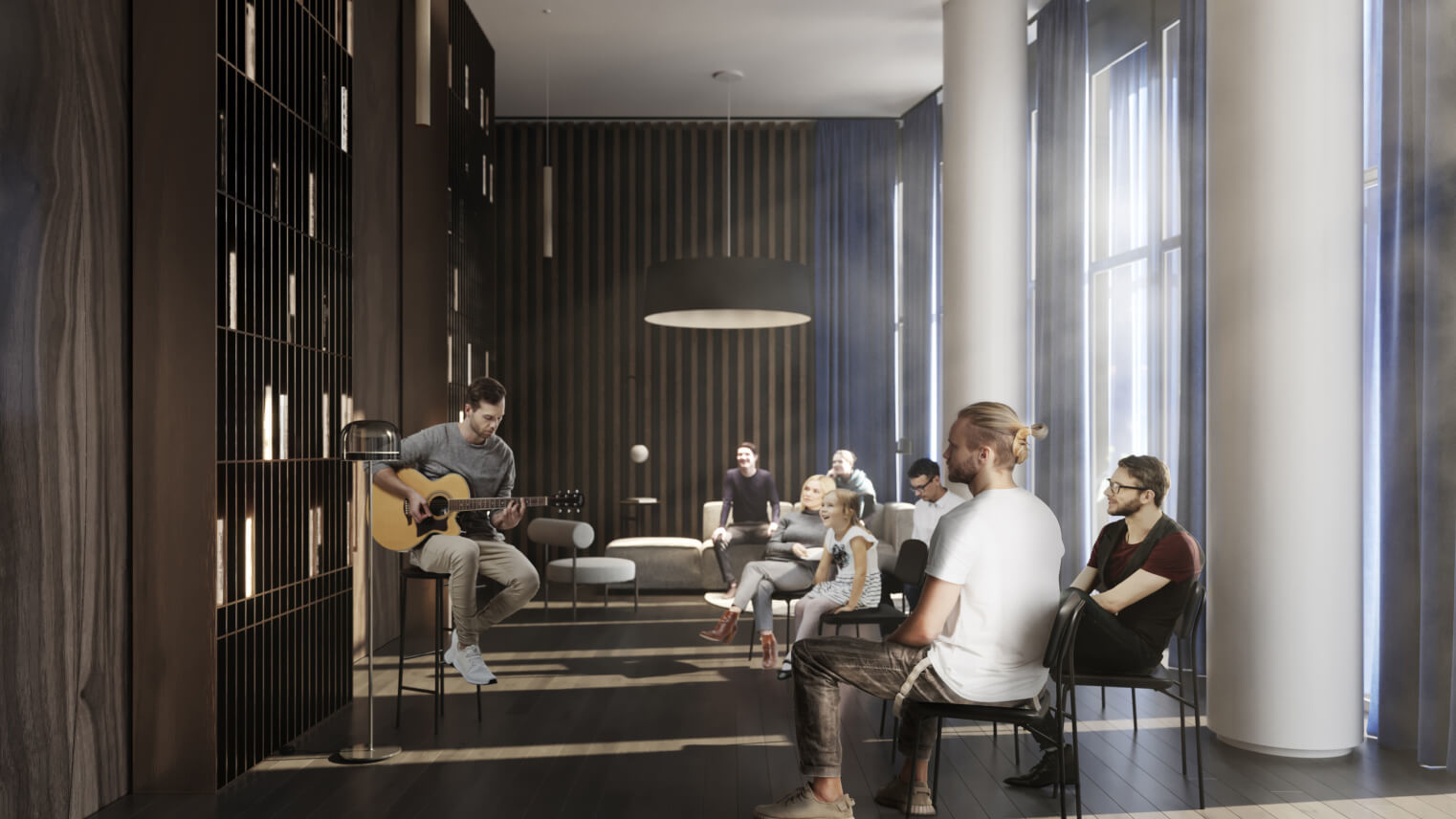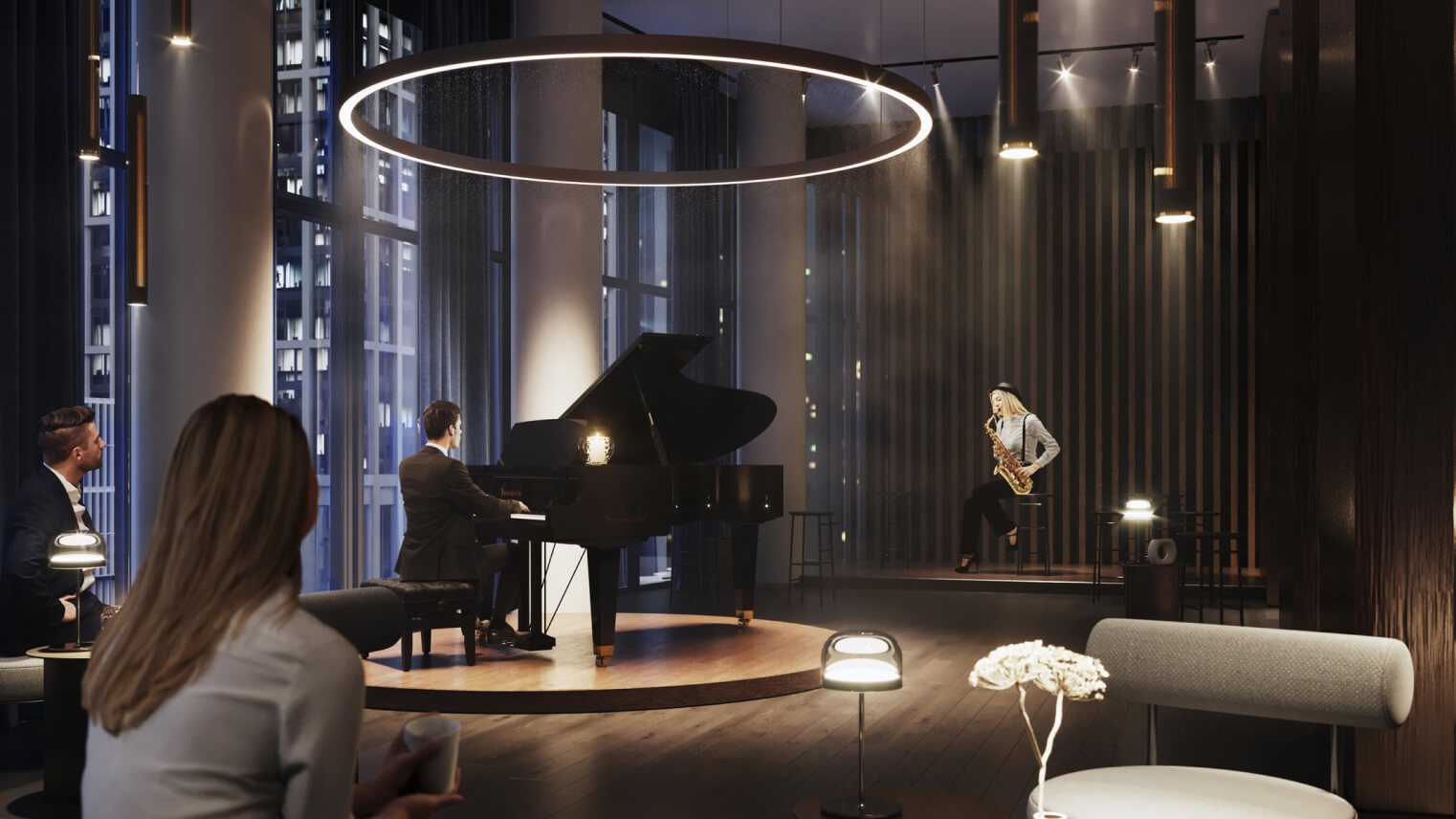 Общественные пространства самого комплекса соответствуют всем последним тенденциям премиального сегмента. «Пространство life space и включает в себя самое нужное. На первых этажах панорамные окна. Оборудованы лаунж-зоны с мягкой мебелью, зона для чтения с кофе-поинтами, санузлы для гостей, колясочные комнаты и комната для мойки лап собак. Есть даже джаз-гостиная, предназначенная для праздников и семейных собраний резидентов комплекса, где можно и поработать в тишине, и провести встречу с деловыми партнерами, переговоры или конференц-колл», ‒ рассказывает управляющий партнер компании «Метриум» (участник партнерской сети CBRE) Надежда Коркка. Высота потолков в лобби составляет до 8 метров.