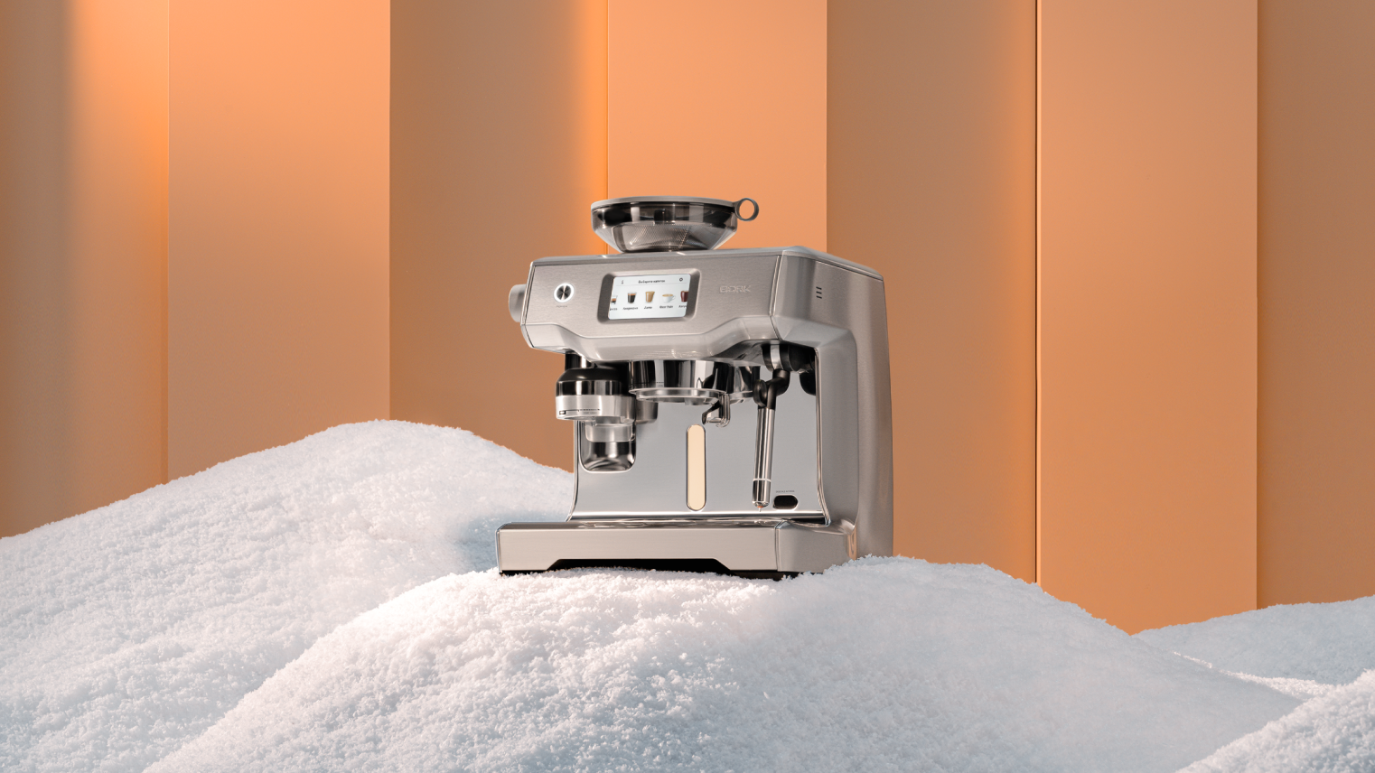 Если доверить дело приготовления бодрящего напитка кофейной станции BORK, то все идеальные образы заваренного кофе, аккуратной пенки и густого аромата, наполняющего комнату, которые вы видели в рекламных роликах, станут реальностью. Это одна из самых оснащенных рожковых кофейных станций, которая практически полностью автоматизирует процесс приготовления: от дозировки (45 степеней помола) и трамбовки свежемолотых зерен для получения безупречной экстракции эспрессо из эталонных 22 граммов кофе до приготовления пышной молочной пены и последующей очистки капучинатора. На сенсорном дисплее можно одним касанием выбрать напиток и отрегулировать настройки ‒ все процессы этой кофейной станции завораживают своей точностью и выверенностью.