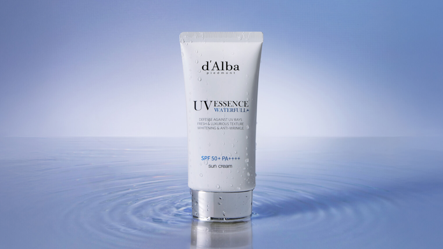 Крем Waterfull Tone-Up Sun Cream SPF 50+ PA++++, помимо солнцезащиты, нацелен на устранение мелких морщинок и осветляет тон кожи. Waterfull Tone-Up Sun Cream Purple SPF50+ PA++++ нейтрализует желтый подтон и может служить удобной базой под макияж.