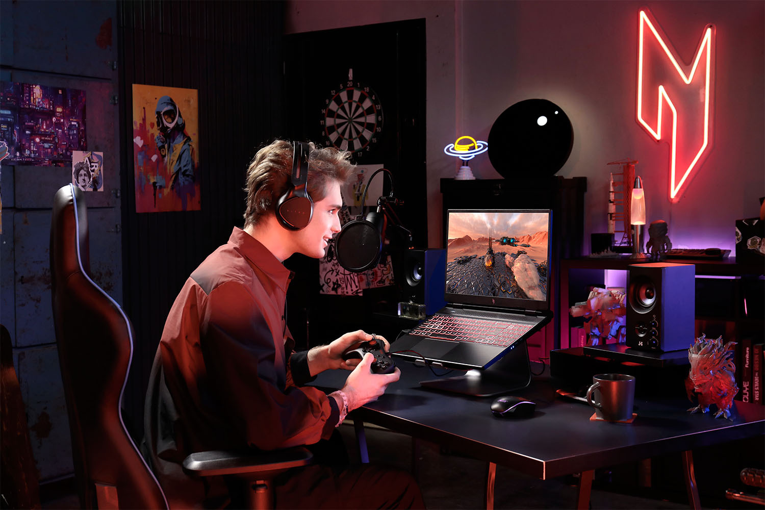 15,6-дюймовый девайс задает весьма высокую планку для гейминга, превзойти которую нелегко. «Сердце» — процессор Intel Core i7 13-го поколения, в тандеме с ним — высокоскоростной накопитель и «оперативка» DDR5. Добавляем сюда графику NVIDIA GeForce RTX 40 серии 40 и получаем одну из самых мощных на сегодня комбинаций для хардкорных игр — или создания «тяжелого» контента. Разумеется, без ИИ сегодня никуда: архитектура NVIDIA Ada Lovelace позволяет выйти на новый уровень производительности и качества графики. ИИ создает дополнительные кадры и в целом оптимизирует работу всех систем, в том числе охлаждения, что во многом и позволяет делать столь тонкие ноутбуки без ущерба производительности.