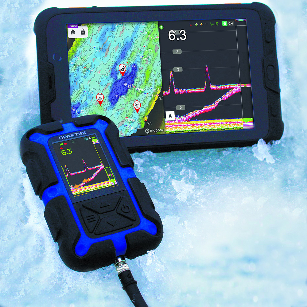 Девайс отечественного производства, который кардинально меняет представление о том, какой может (и должна) быть рыбалка — с ним можно построить детальные карты нужных водоемов, от пруда до водохранилищ, работать с картами больших размеров и определять глубины (даже микрорельеф) с высокой точностью. Отныне можно фиксировать все свои наработки в процессе ловли: создавать карты глубин, отмечать интересные подводные объекты, обмениваться с друзьями записями эхолотных данных, картами, палитрами, маркерами, в том числе и с прикрепленными фотографиями и скринами. Изображение зуммируется, а записи можно посмотреть ретроспективно, перемотав назад до 5 минут истории. Во время просмотра есть возможность установить маркер на эхолоте (стая рыб или затопленный объект), который отобразится на карте. Особая фишка — создание карт глубин водоёмов зимой, что избавляет от траты времени на высверливание лунки и погружение датчика в воду. Чтобы узнать глубину — достаточно включить эхолот вместе с мобильным приложением. Полного заряда аккумулятора хватает на целые сутки непрерывной работы.